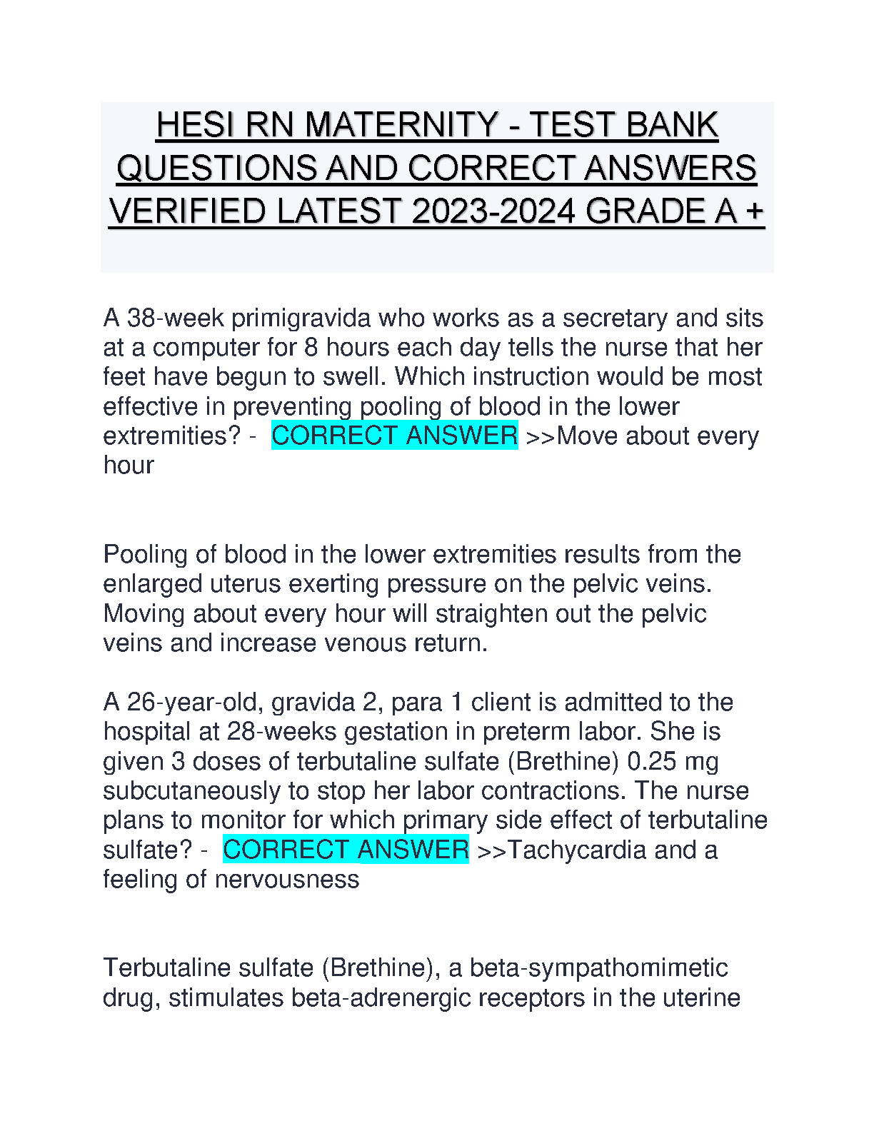 HESI RN Maternity Test Bank: Questions and Correct Answers - 2023-2024 Edition by HESI