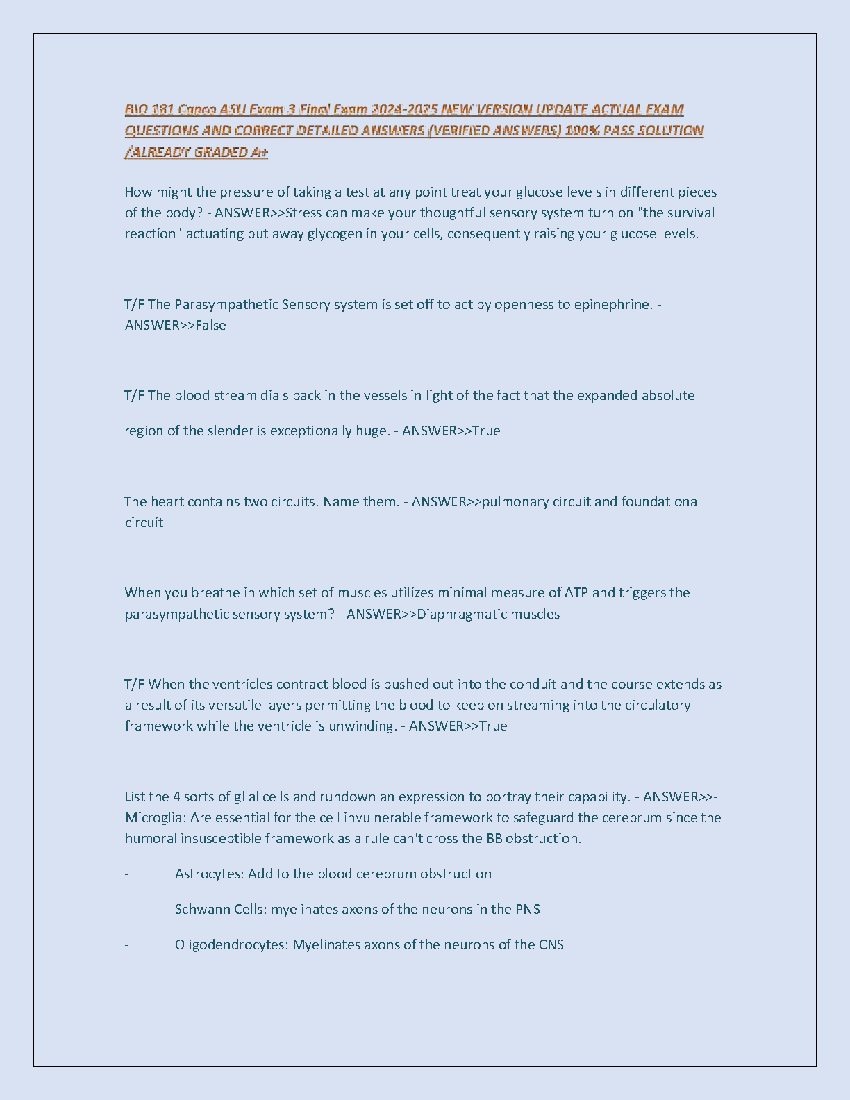 BIO 181 Capco ASU Exam 3 Final Exam 2024-2025: Questions and Correct Detailed Answers by [Author Name - if available online]