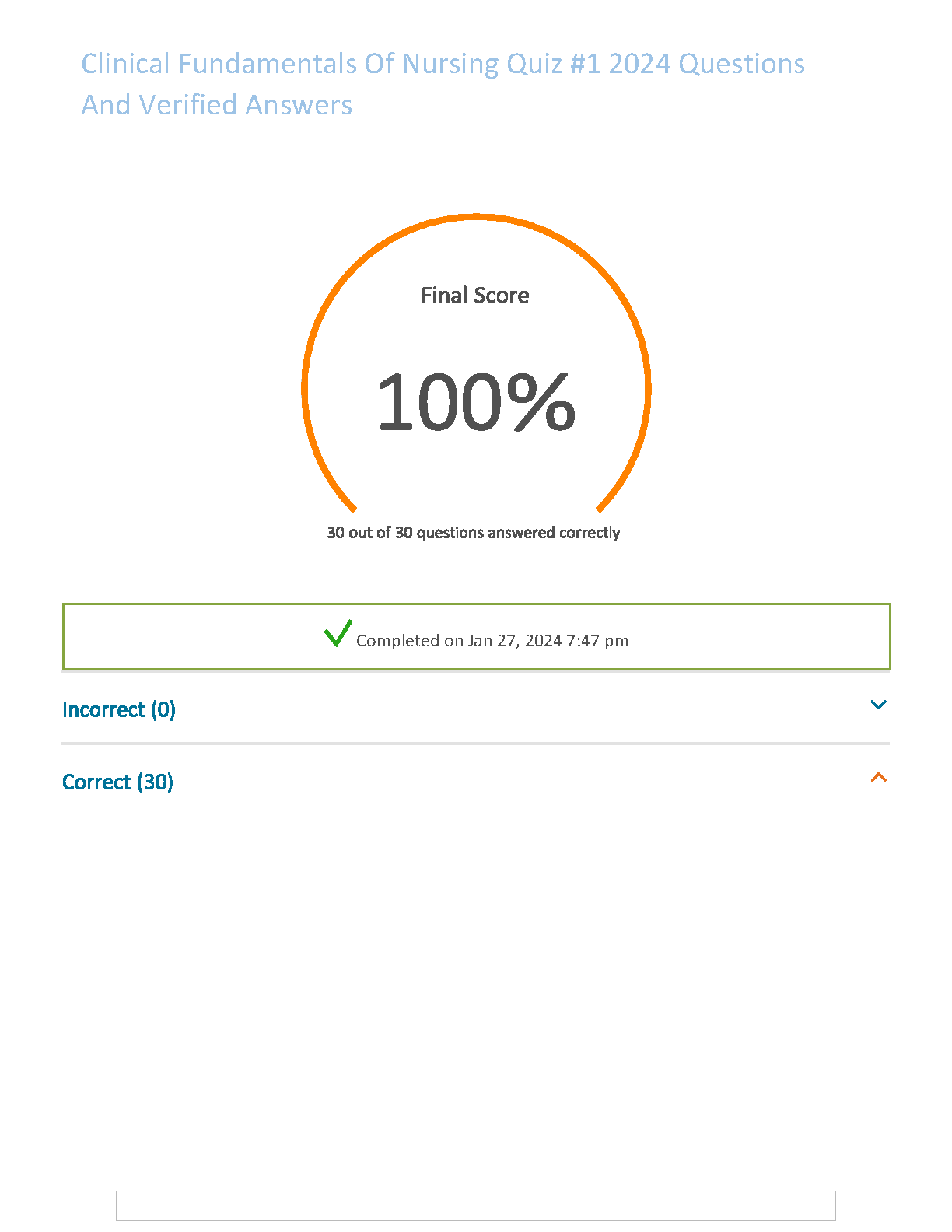 2024 Clinical Fundamentals of Nursing Quiz #1: Questions and Verified Answers by [Author Name is missing from the provided context. Further research needed to complete the title.]