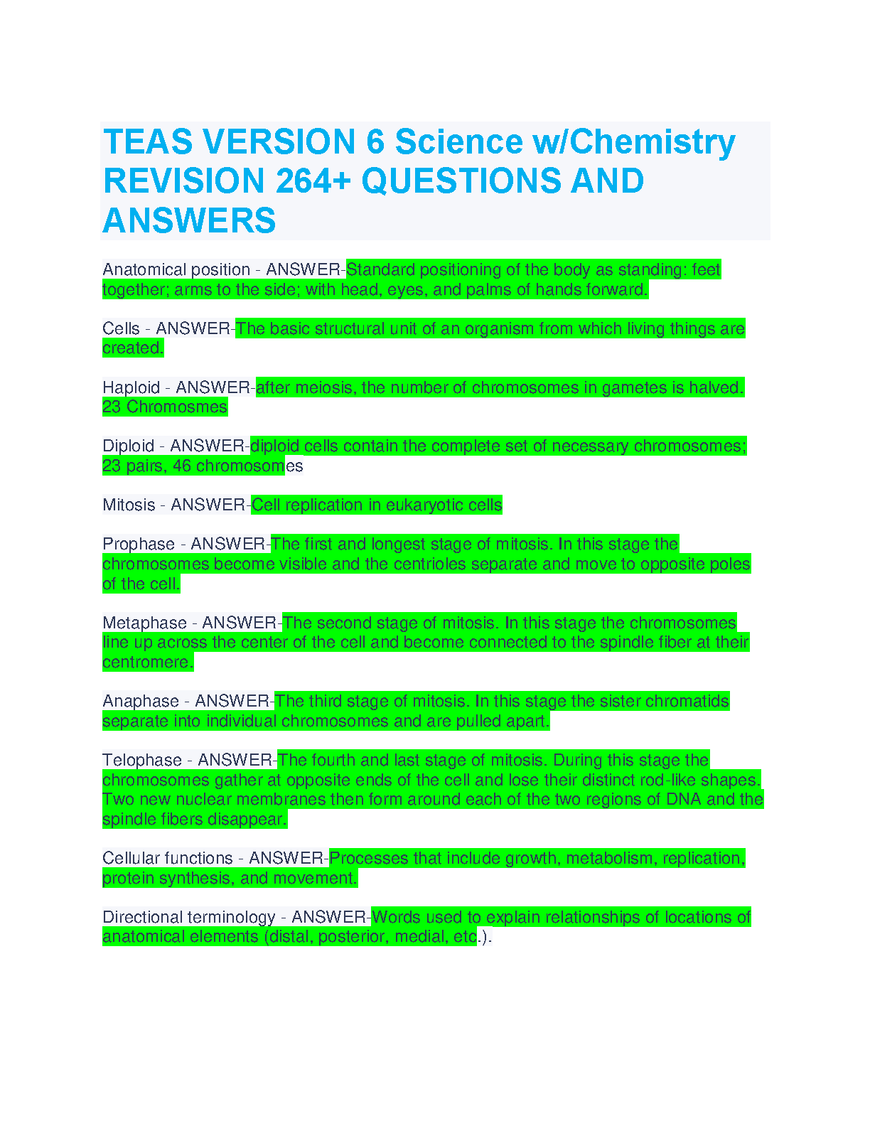 TEAS Version 6 Science w/Chemistry Revision: 264+ Questions and Answers by Unknown Author