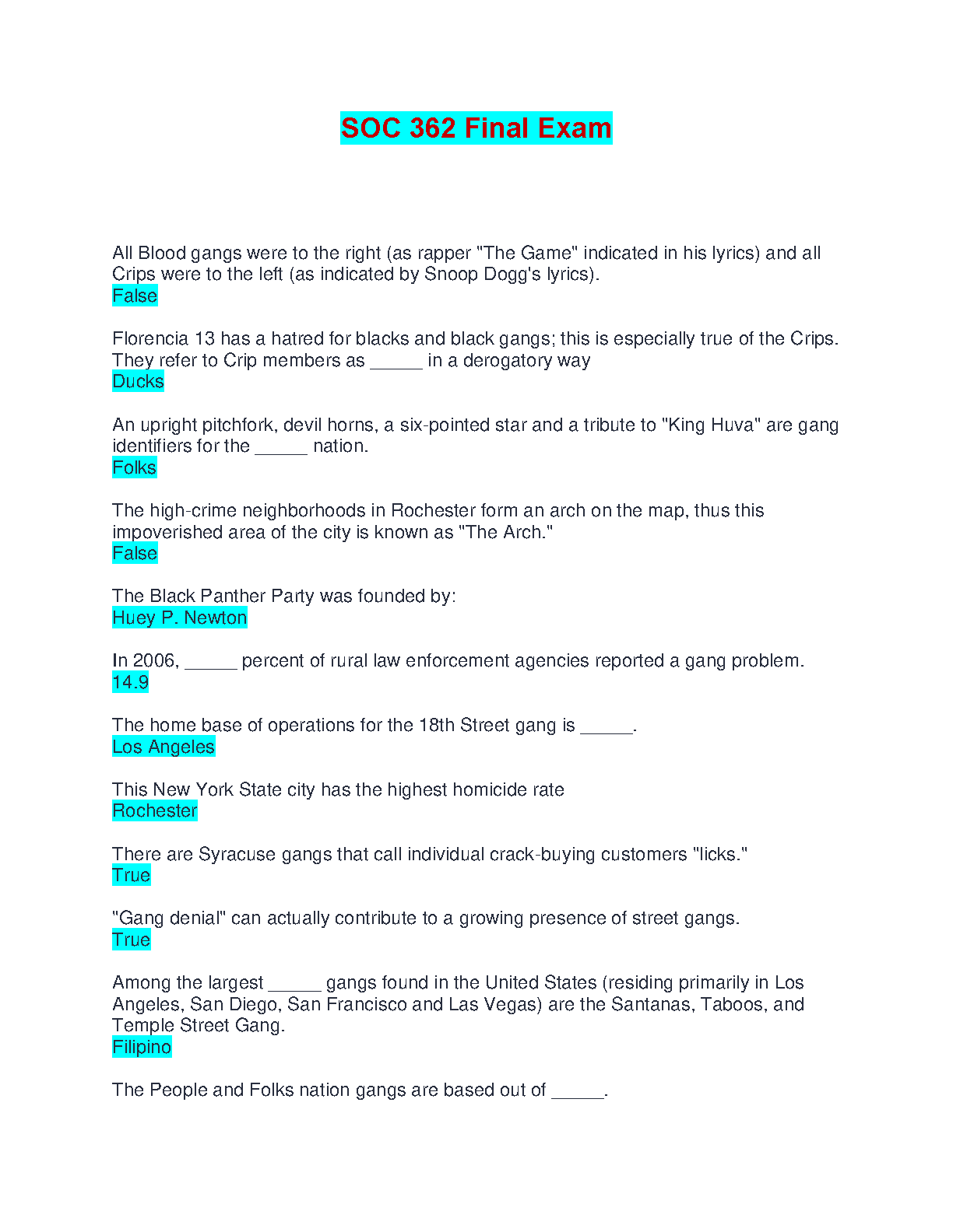 SOC 362 Final Exam: A 2024/2025 Guide to Ace Your Exam on the First Attempt