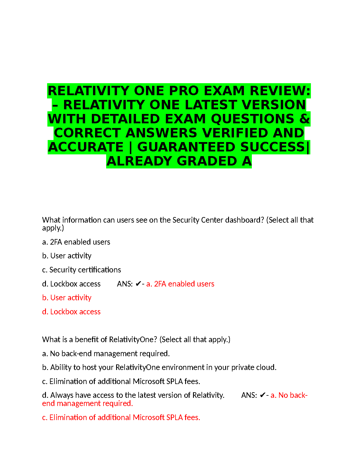 RelativityOne Pro Exam Review: Latest Version with Detailed Exam Questions & Answers by [Author Names - If available online, otherwise leave blank]