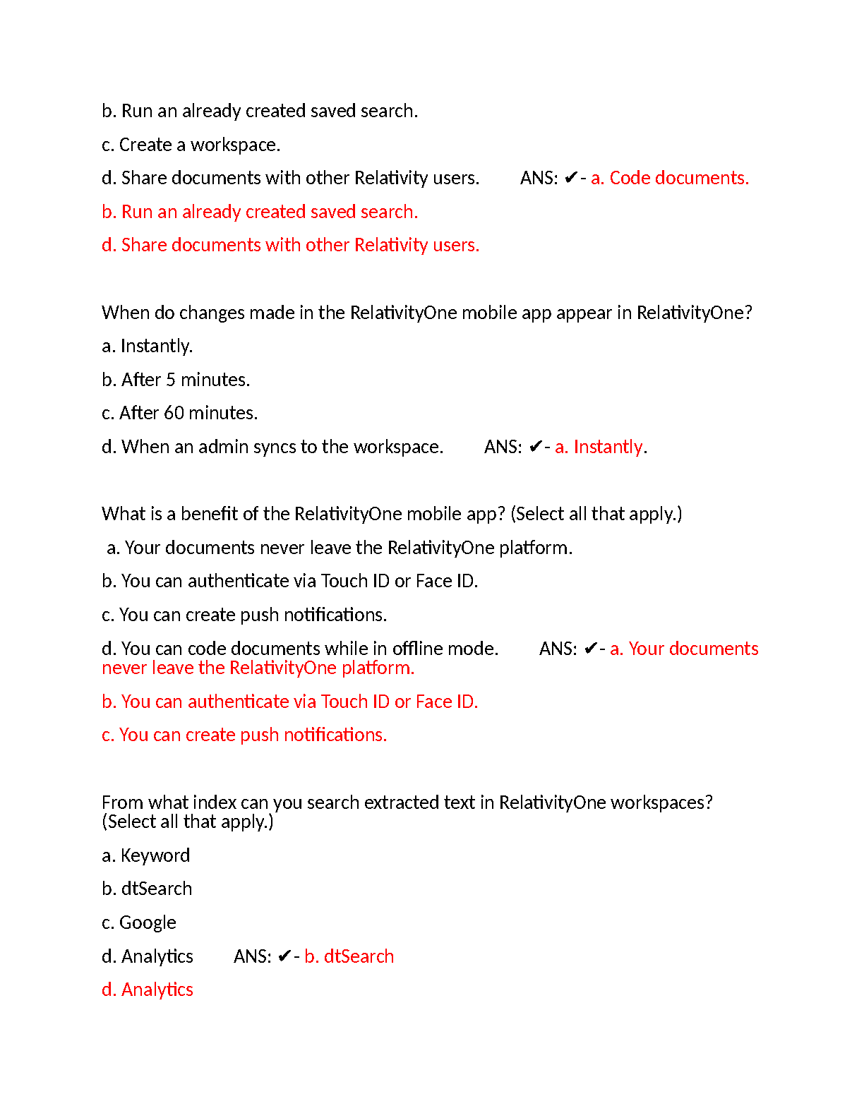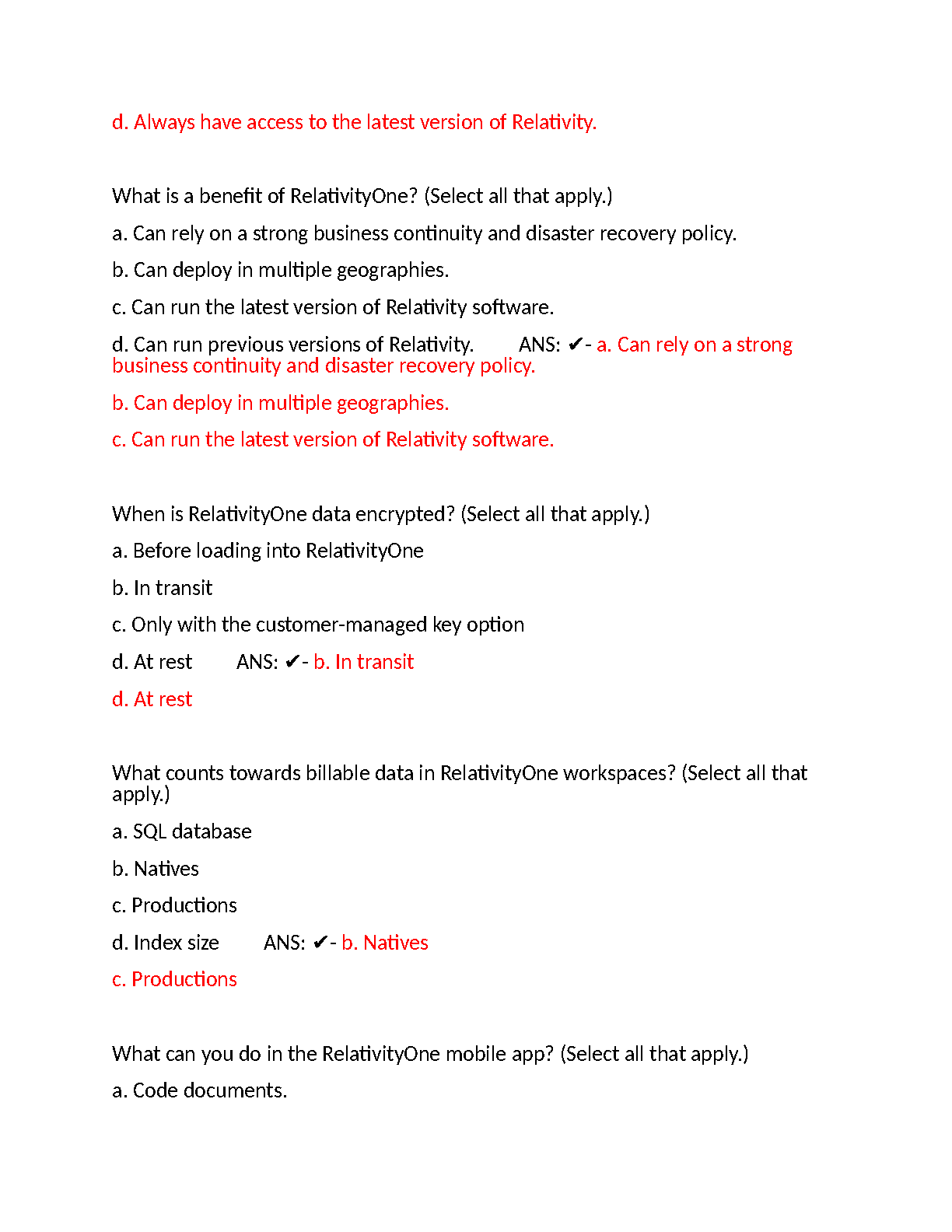 Ace your RelativityOne exam on the first try with this comprehensive review guide. It features detailed exam questions and verified answers, ensuring accurate preparation and guaranteed success. The questions are already graded, allowing for efficient self-assessment.