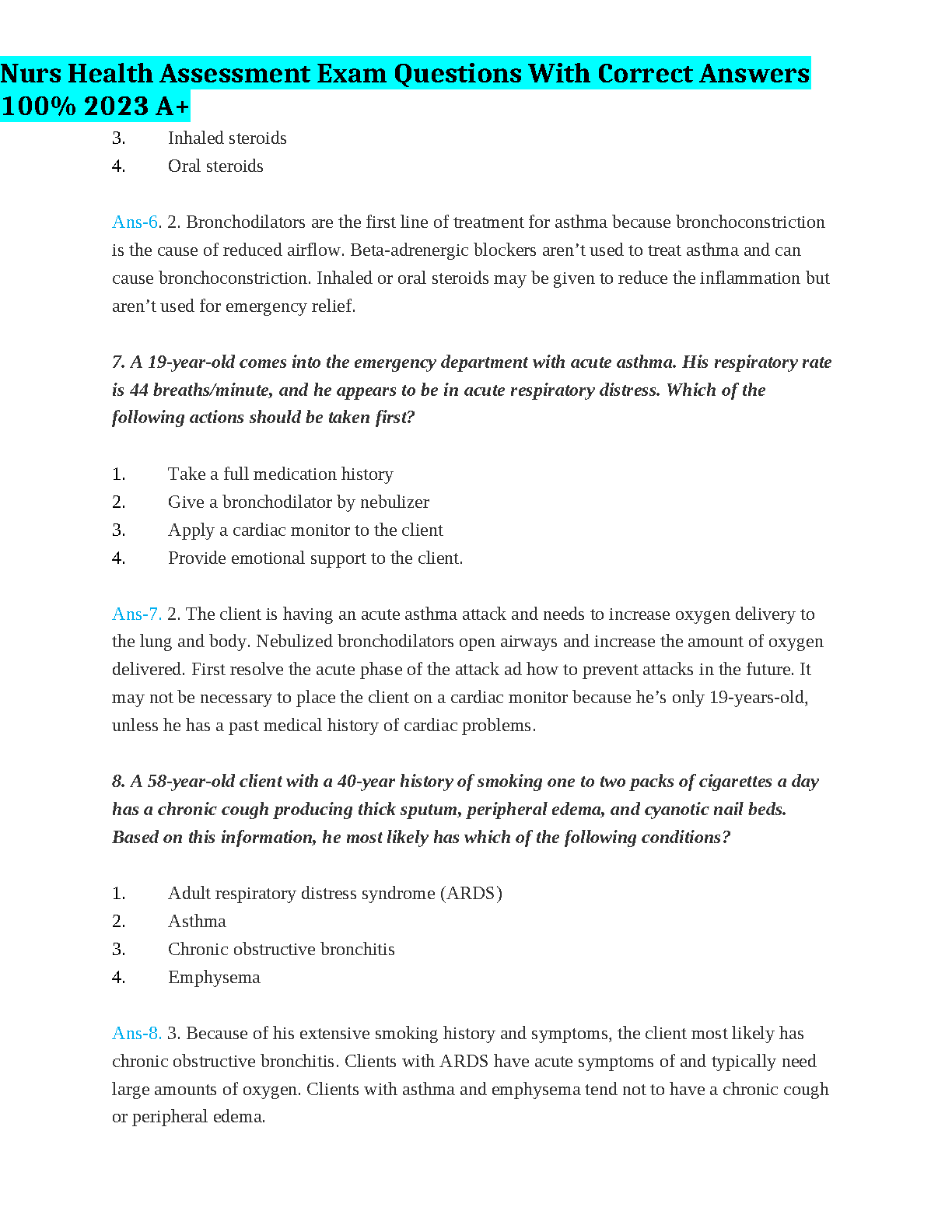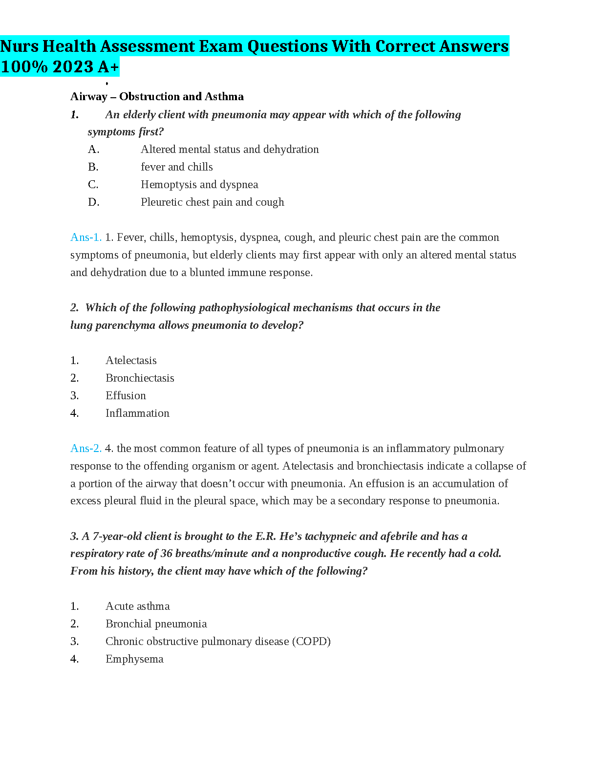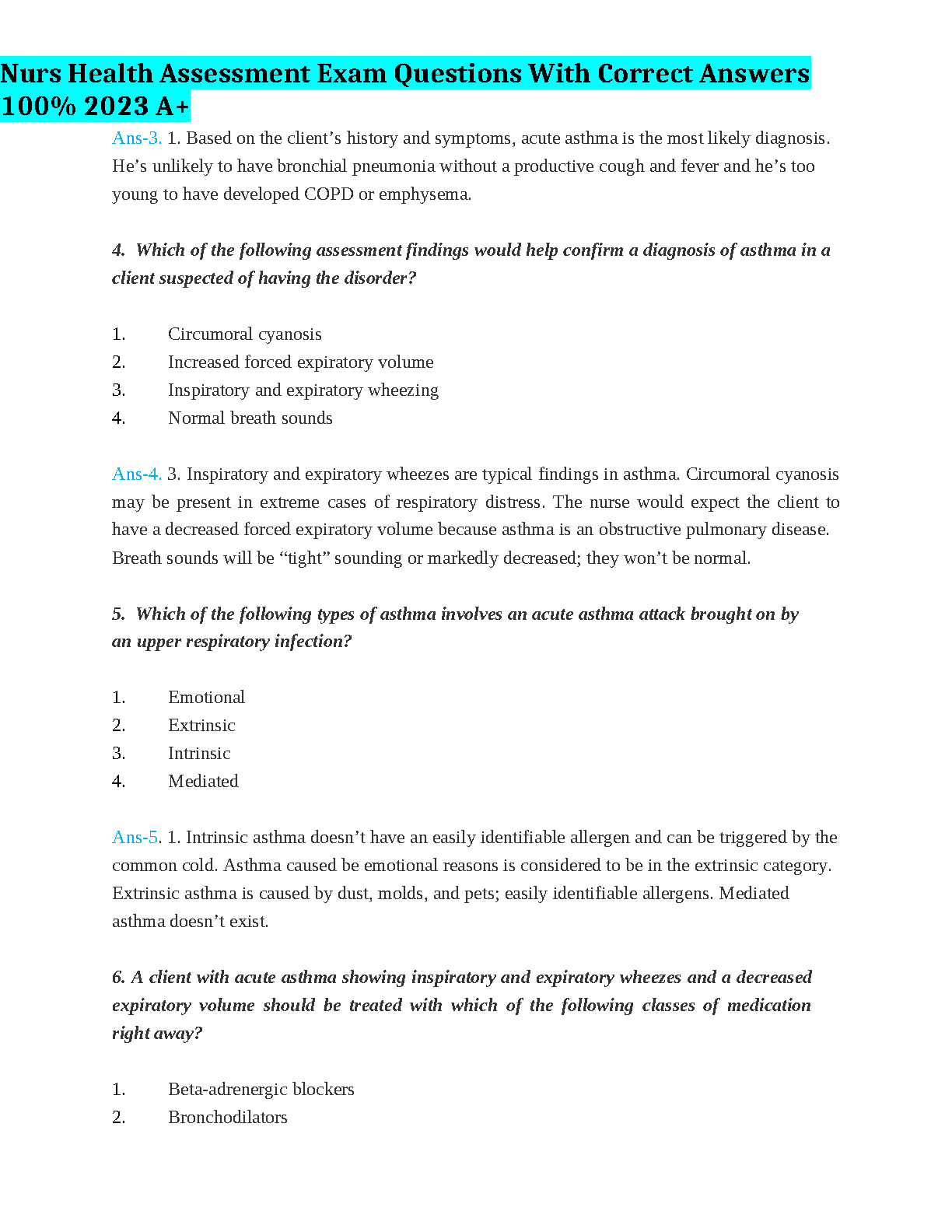Nurses Health Assessment Exam Questions With Correct Answers 2023 A+ Edition by Unknown Author