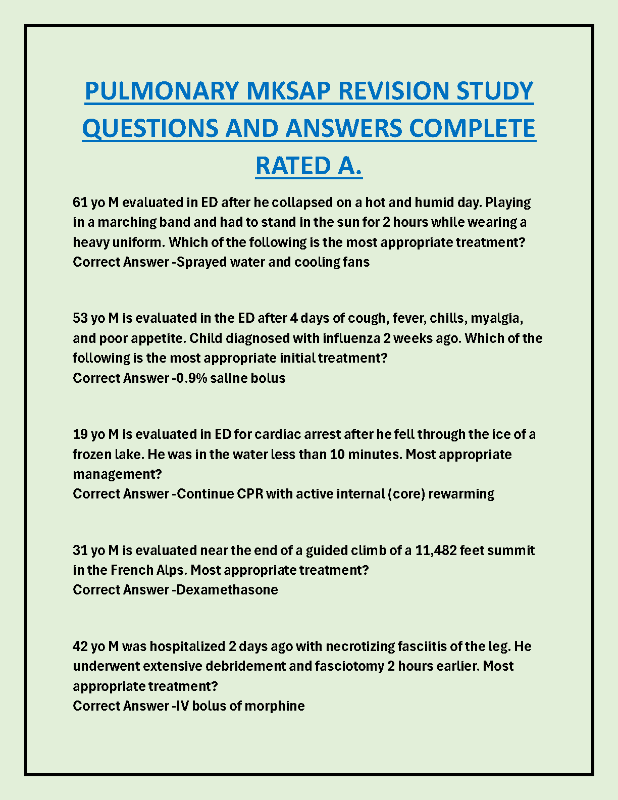 Ace your exams the first time with this comprehensive guide. This resource provides a complete set of Pulmonary MKSAP revision questions and answers, rated A, designed to help students master the material and avoid resits. Perfect for the 2024-2025 academic year.