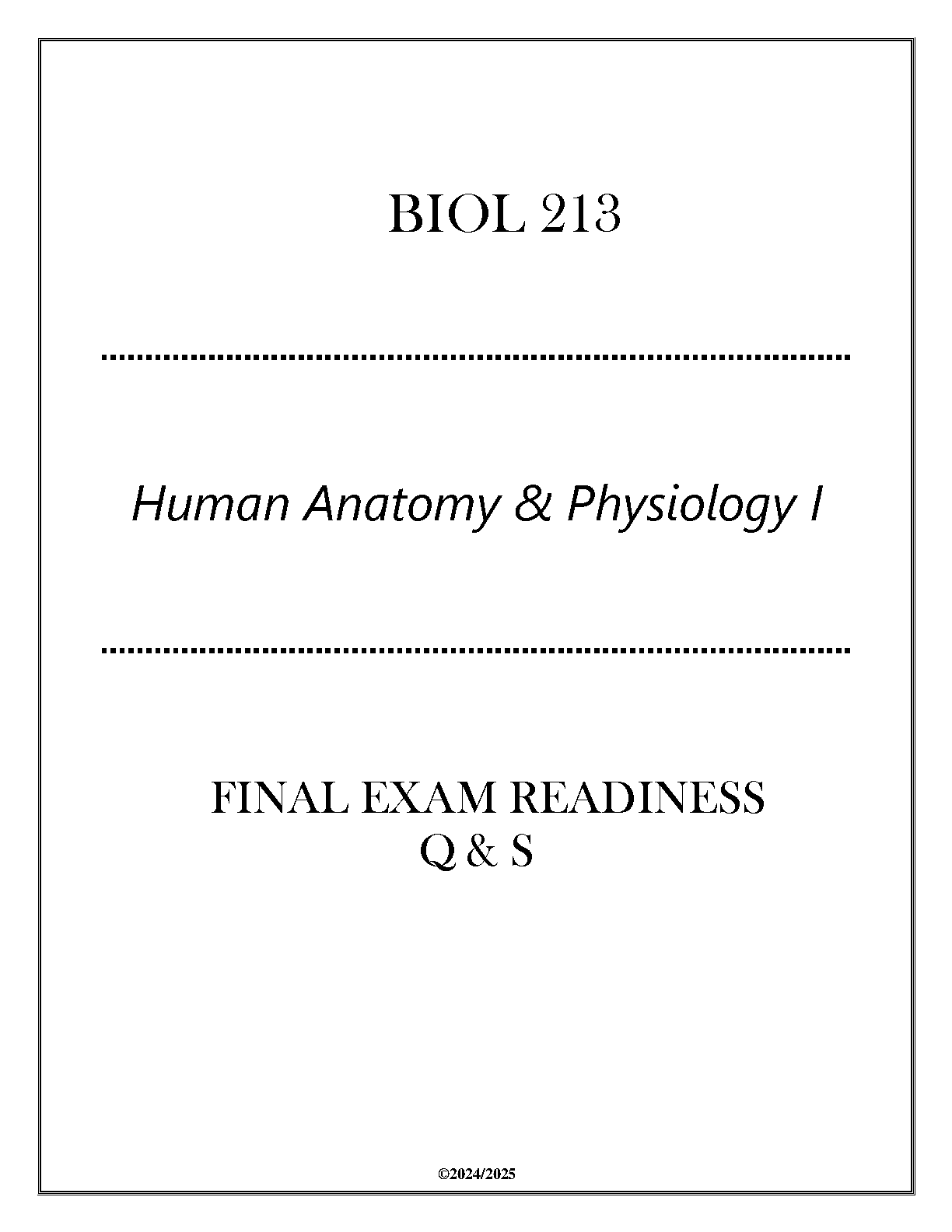 BIOL 213 Human Anatomy & Physiology I Final Exam Readiness Q&A 2024-2025 Edition