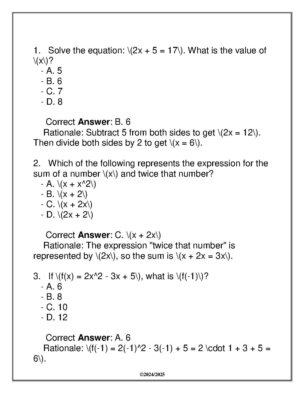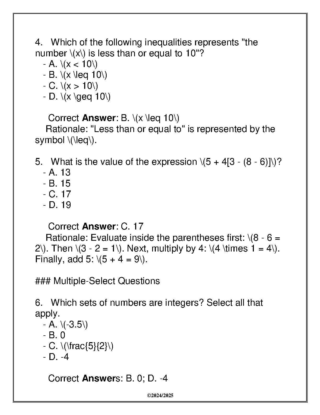 ATI TEAS 7 Exam Readiness Questions & Answers: Number & Algebra - 2024/2025 Edition