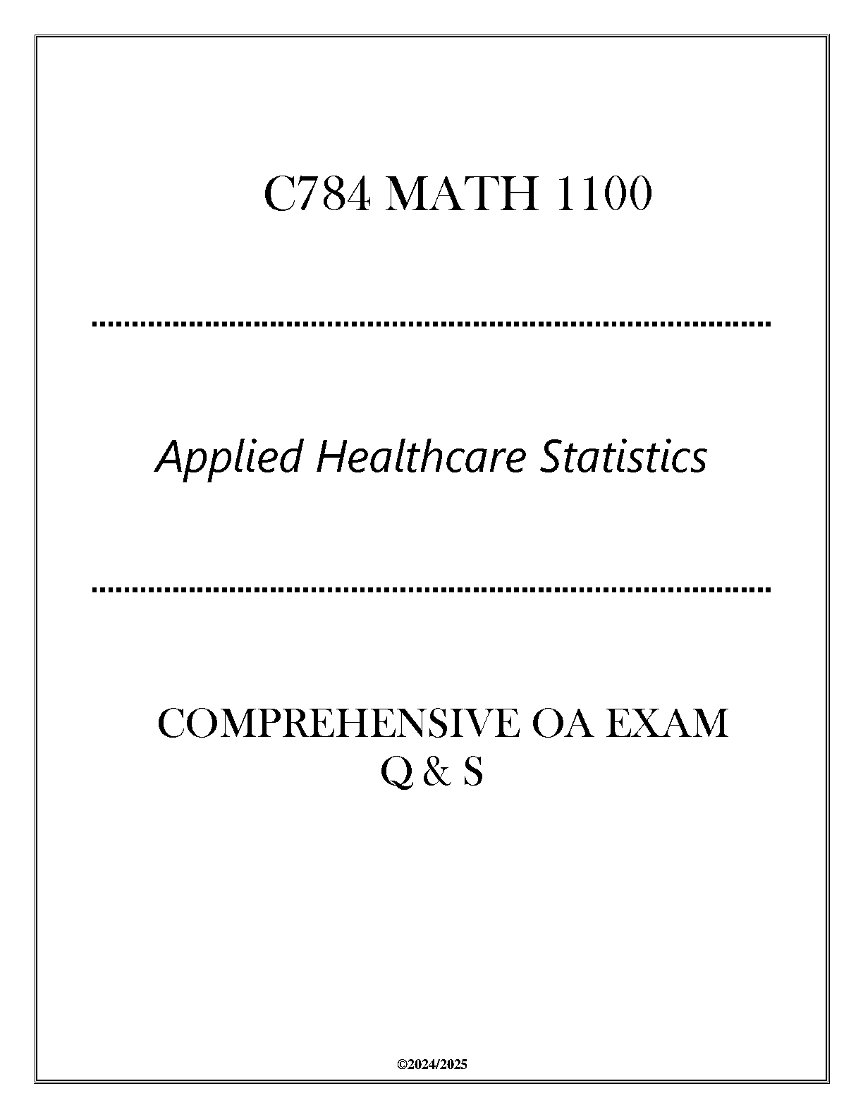 C784 MATH 1100 Applied Healthcare Statistics: Comprehensive OA Exam Q&A for 2024-2025 Academic Year
