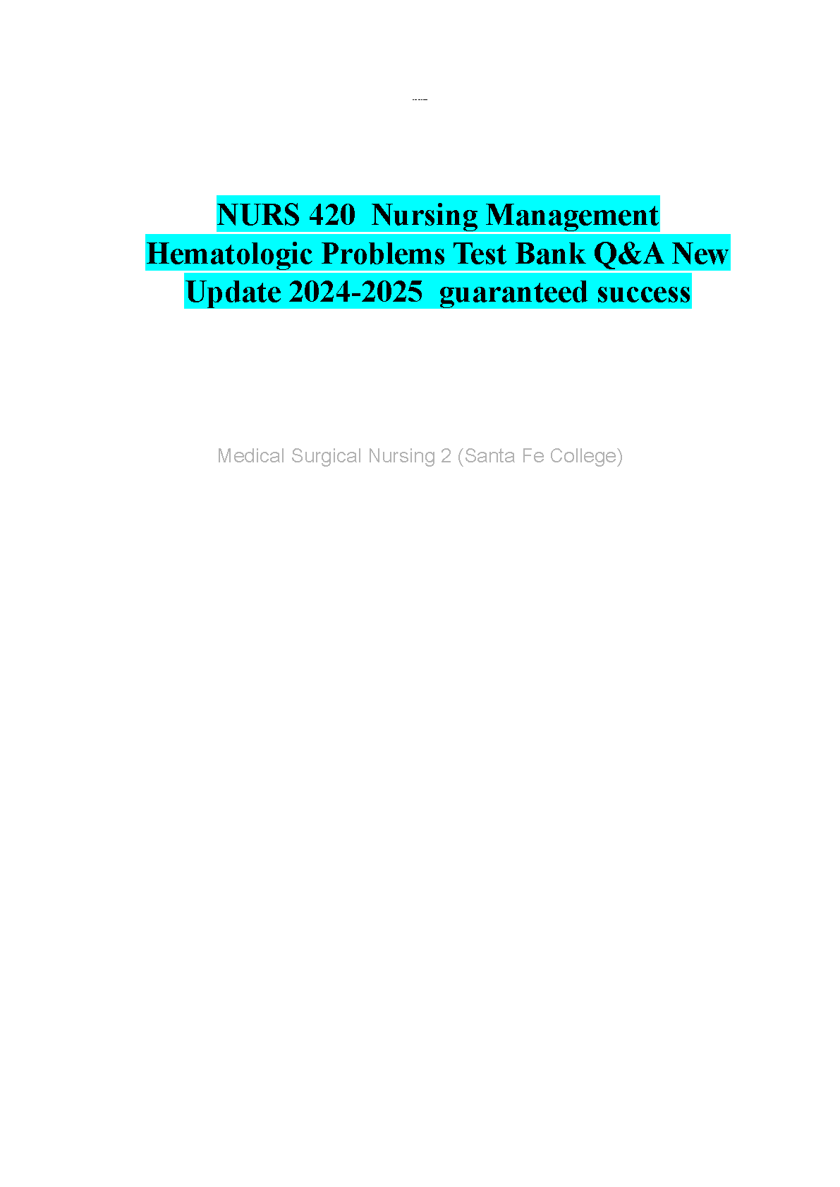 NURS 420 Nursing Management Hematologic Problems Test Bank Q&A: 2024-2025 Update for Guaranteed Success