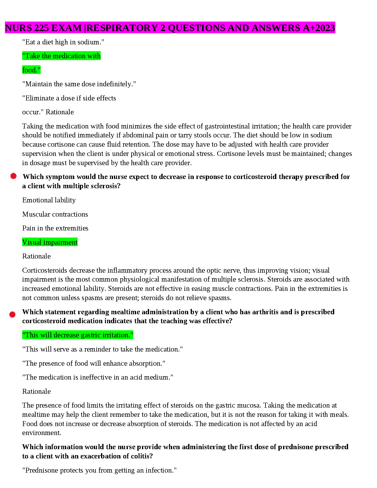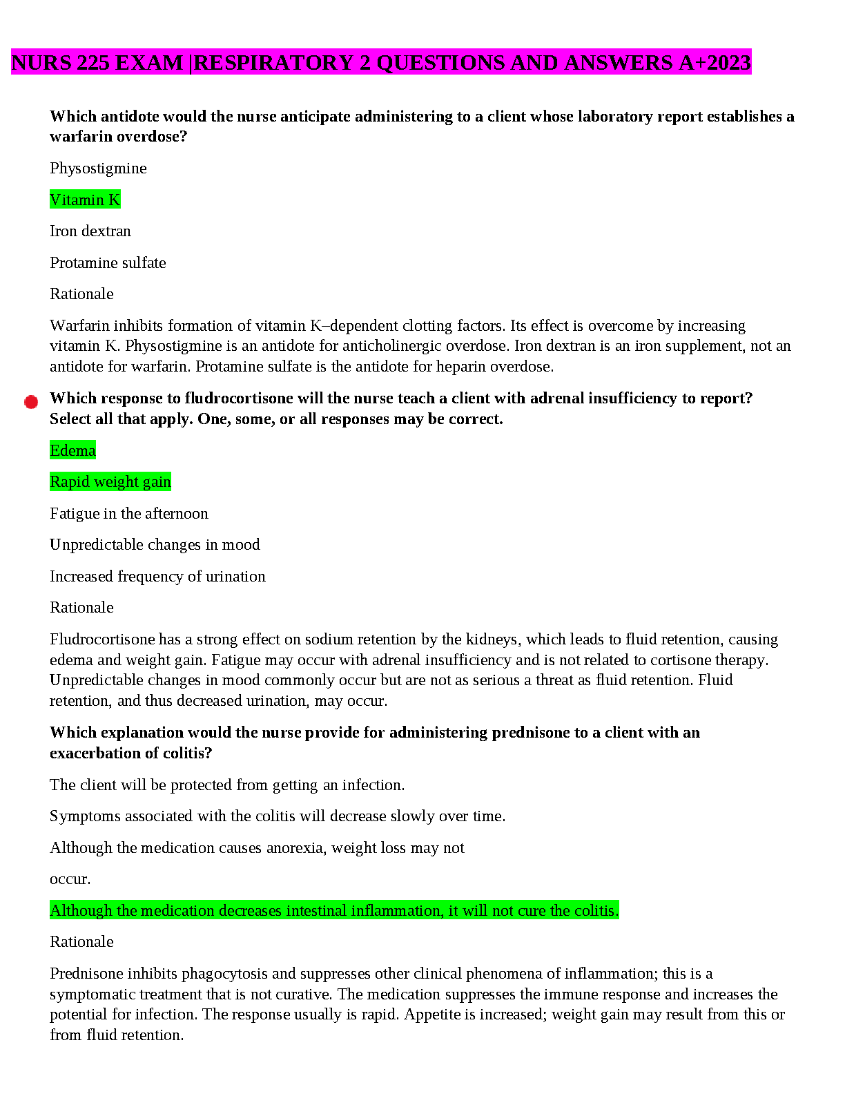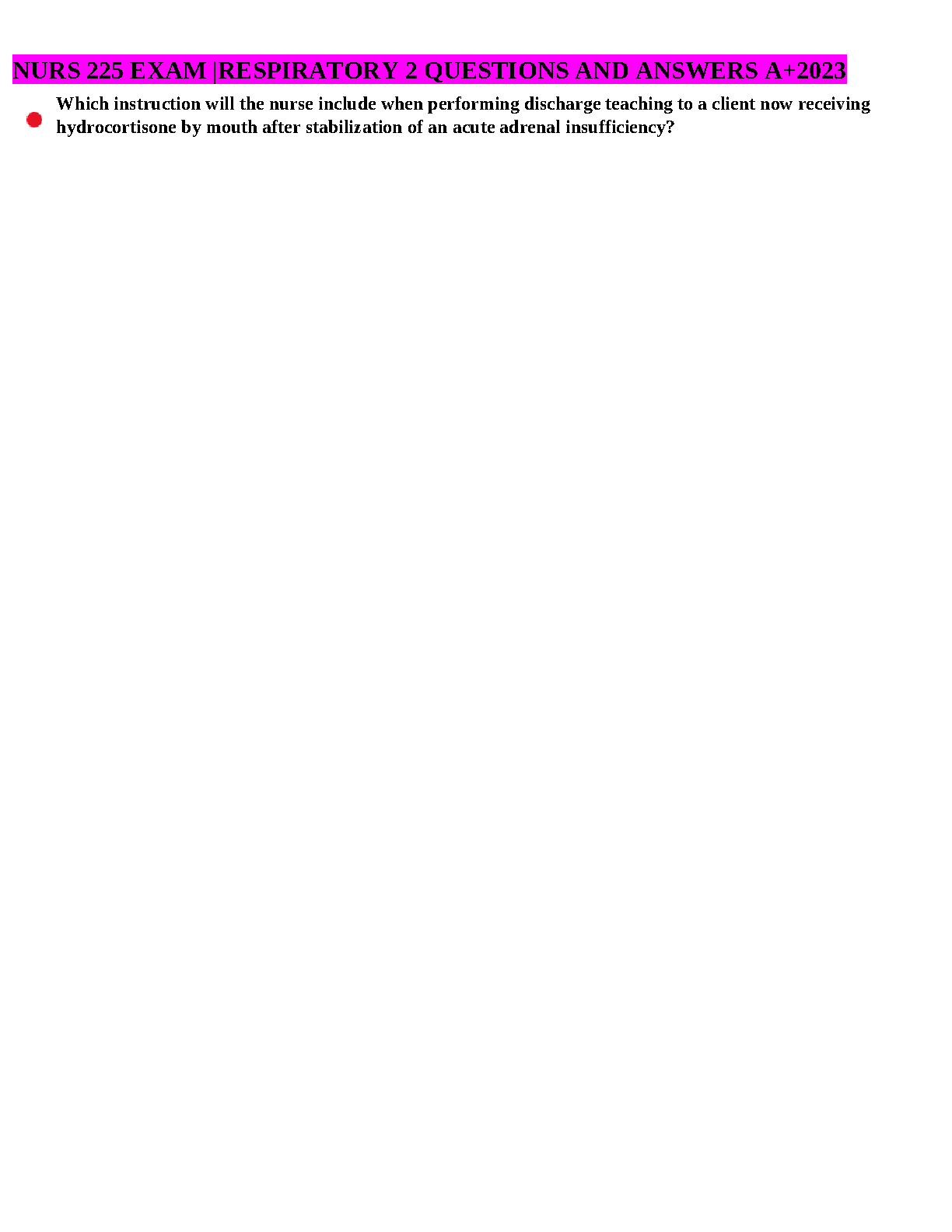 NURS 225 Exam: Respiratory 2 Questions and Answers A+ 2023 Edition by [Author Name if available, otherwise remove this part]