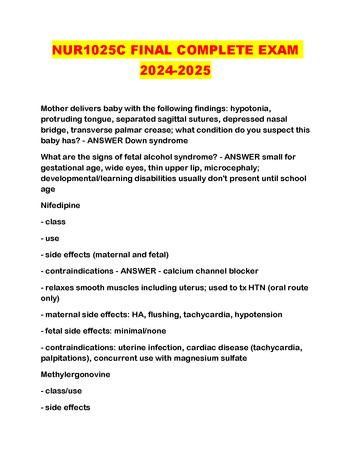 NUR1025C Final Complete Exam 2024-2025: Ace Your Nursing Exams with This Comprehensive Study Guide