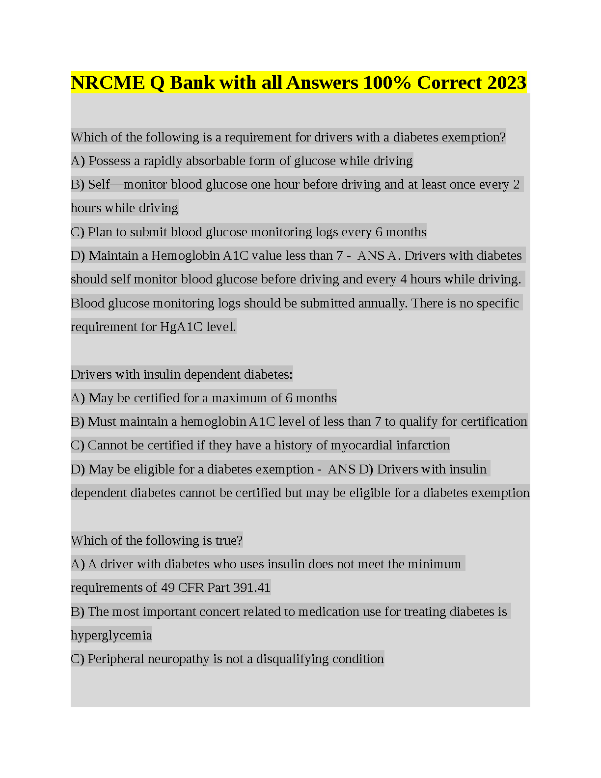 NRCME Q Bank with all Answers 100% Correct 2023 Edition by [Author Names not found in the provided text or online]