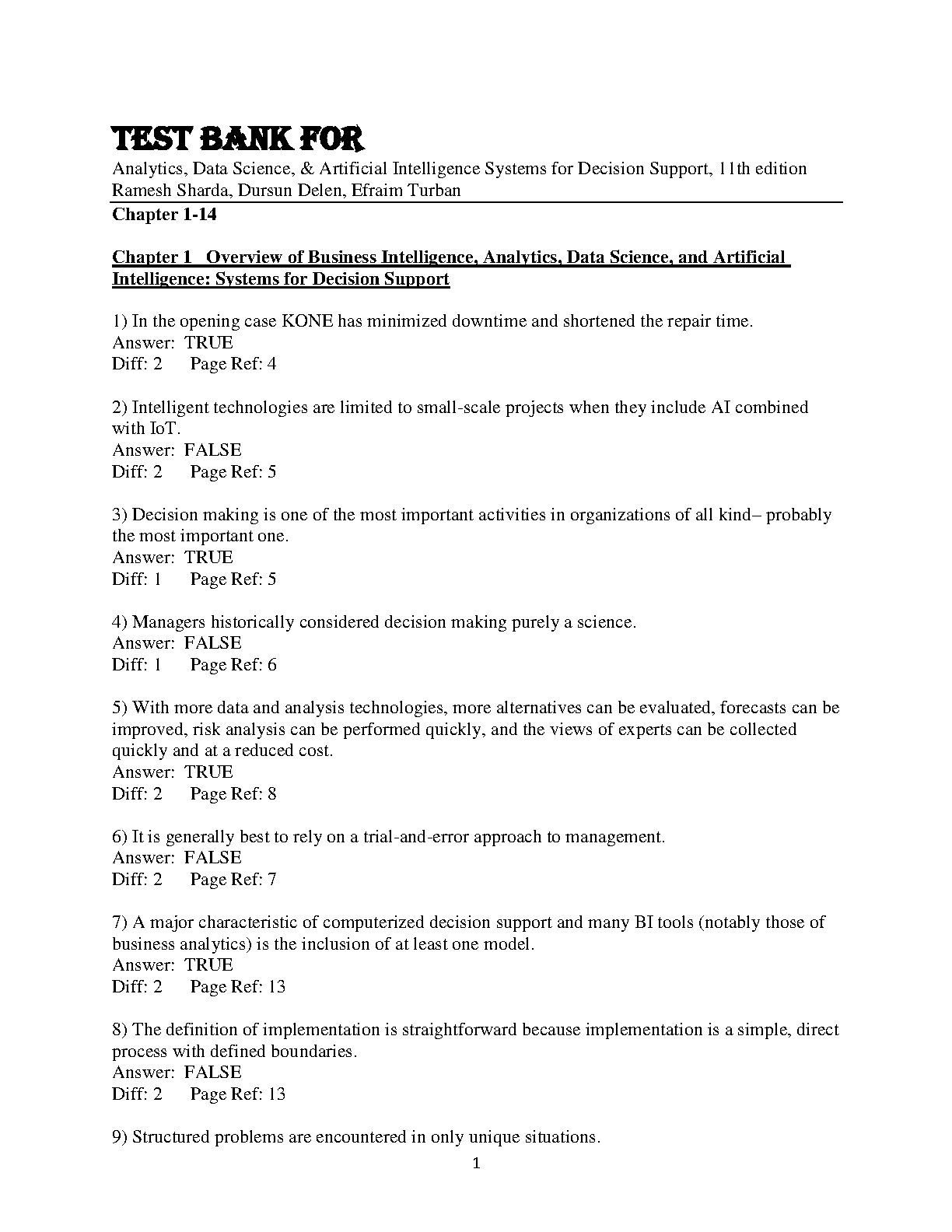 Access the complete test bank for "Analytics, Data Science, & Artificial Intelligence Systems for Decision Support, 11th edition" by Ramesh Sharda, Dursun Delen, and Efraim Turban. Prepare effectively for exams and achieve success.