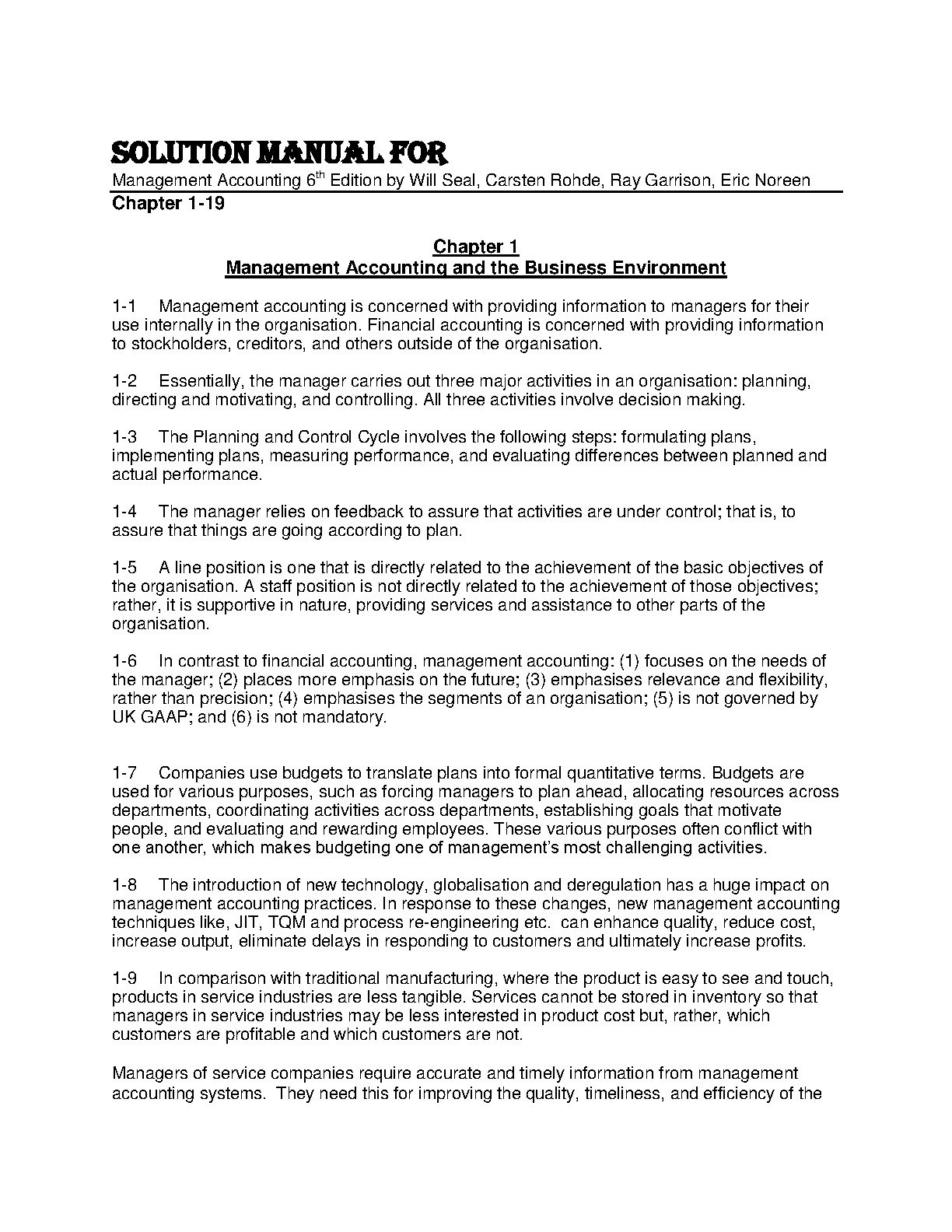 Management Accounting 6th Edition Solution Manual by Will Seal, Carsten Rohde, Ray Garrison, Eric Noreen