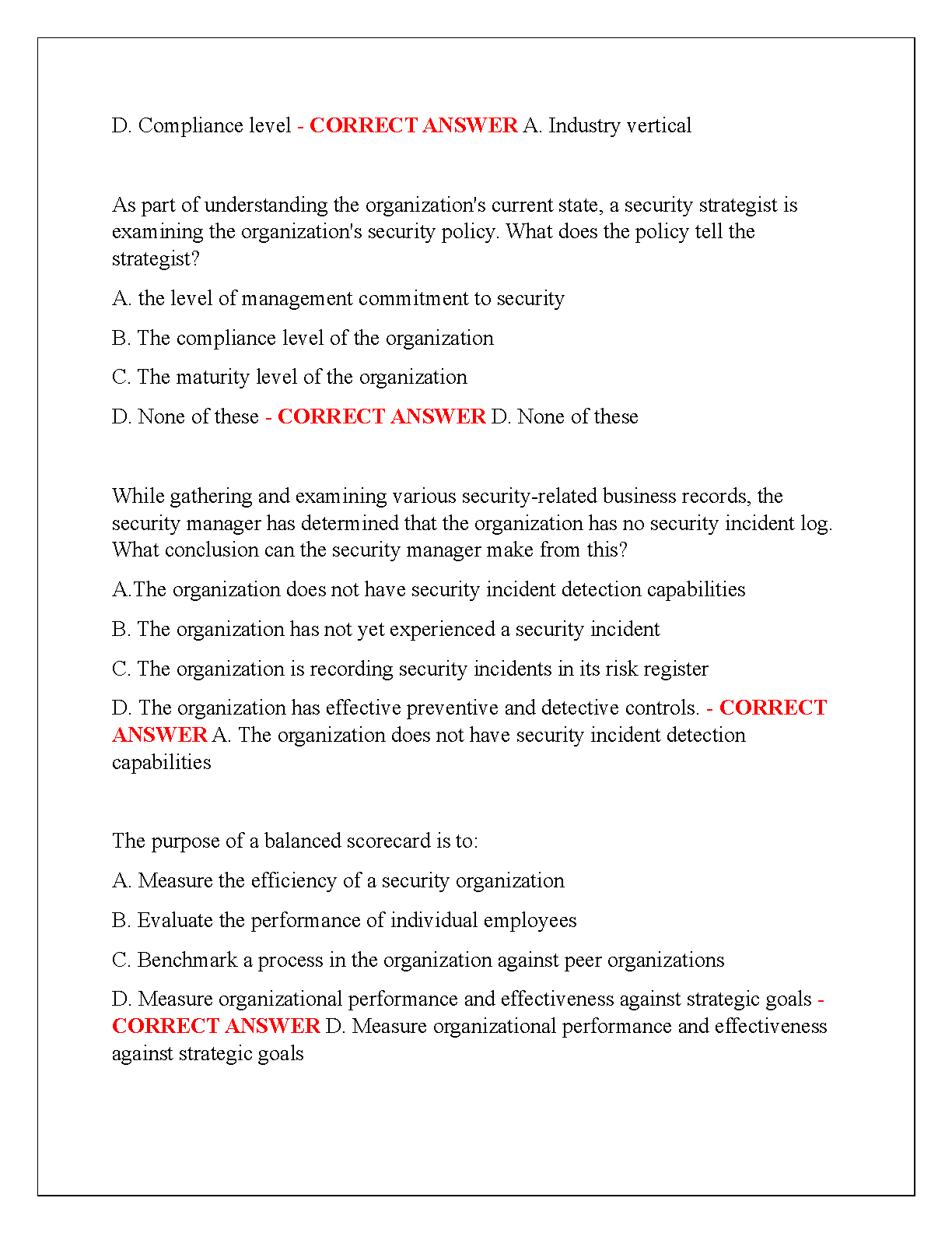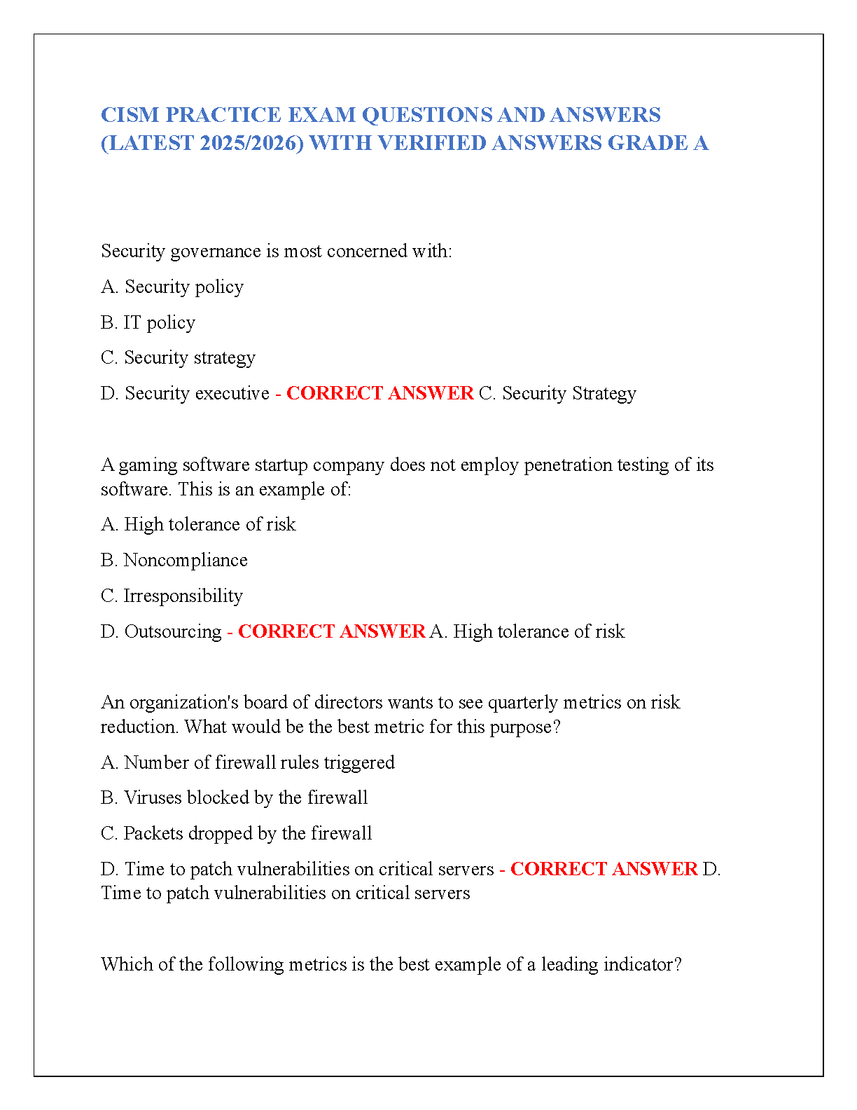 CISM Practice Exam Questions and Answers (Latest 2025/2026 Edition) with Verified Answers Grade A