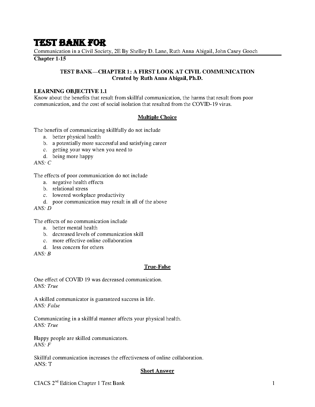 Ace your Communication in a Civil Society exam with this comprehensive 2nd edition test bank. Prepare effectively, avoid resits, and pass on your first attempt. This resource covers key concepts and learning objectives, providing valuable practice for exam success.