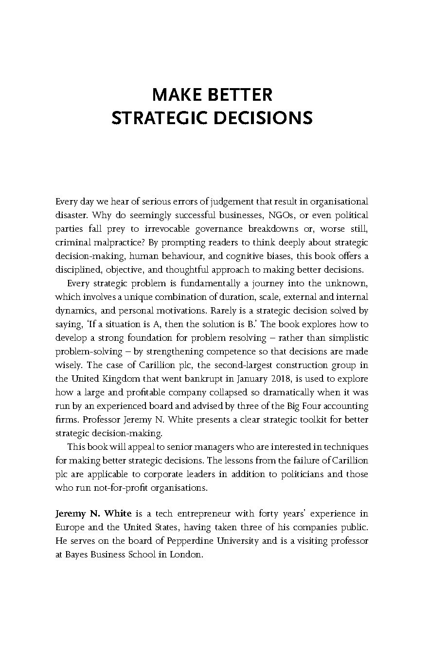 Make Better Strategic Decisions: How to Develop Robust Decision-Making to Avoid Organisational Disasters by Jeremy N. White (1st Edition)