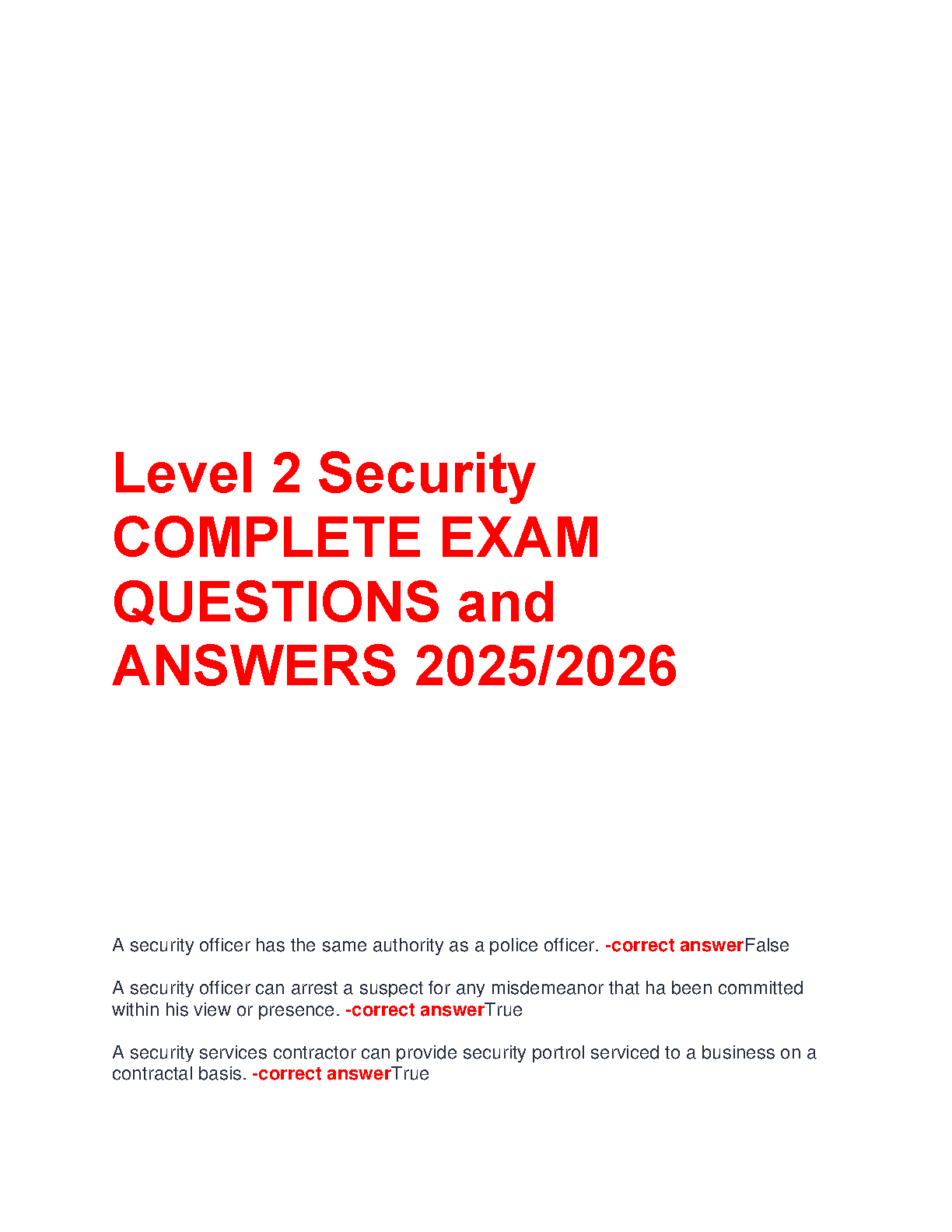 Level 2 Security Complete Exam Questions and Answers 2025/2026 by Unknown Author