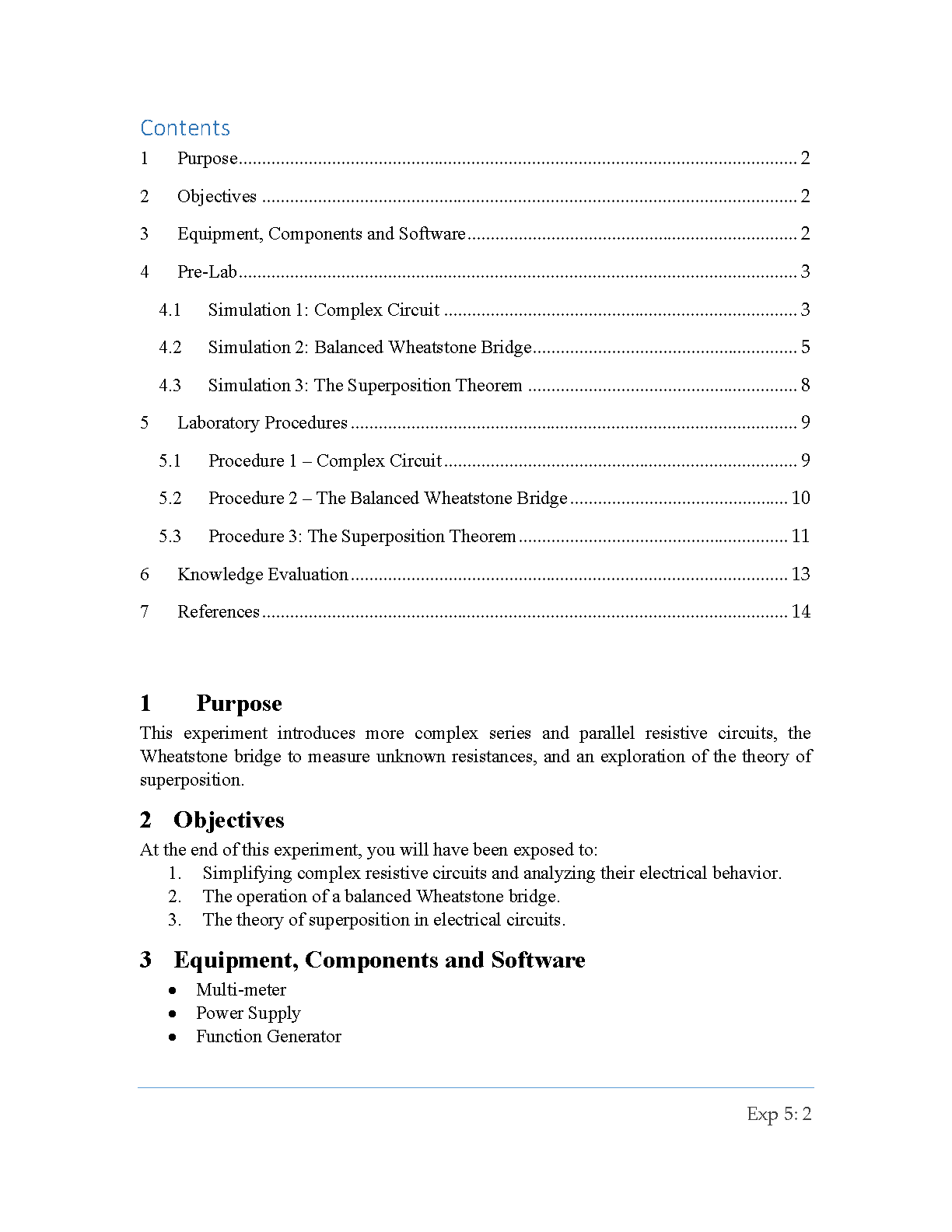 ELET 1400 Circuit Theory and Laboratory I: Experiment 5 - Complex Series-Parallel Resistive Circuits, Wheatstone Bridge, and Superposition Theorem (Spring 2024 Edition)