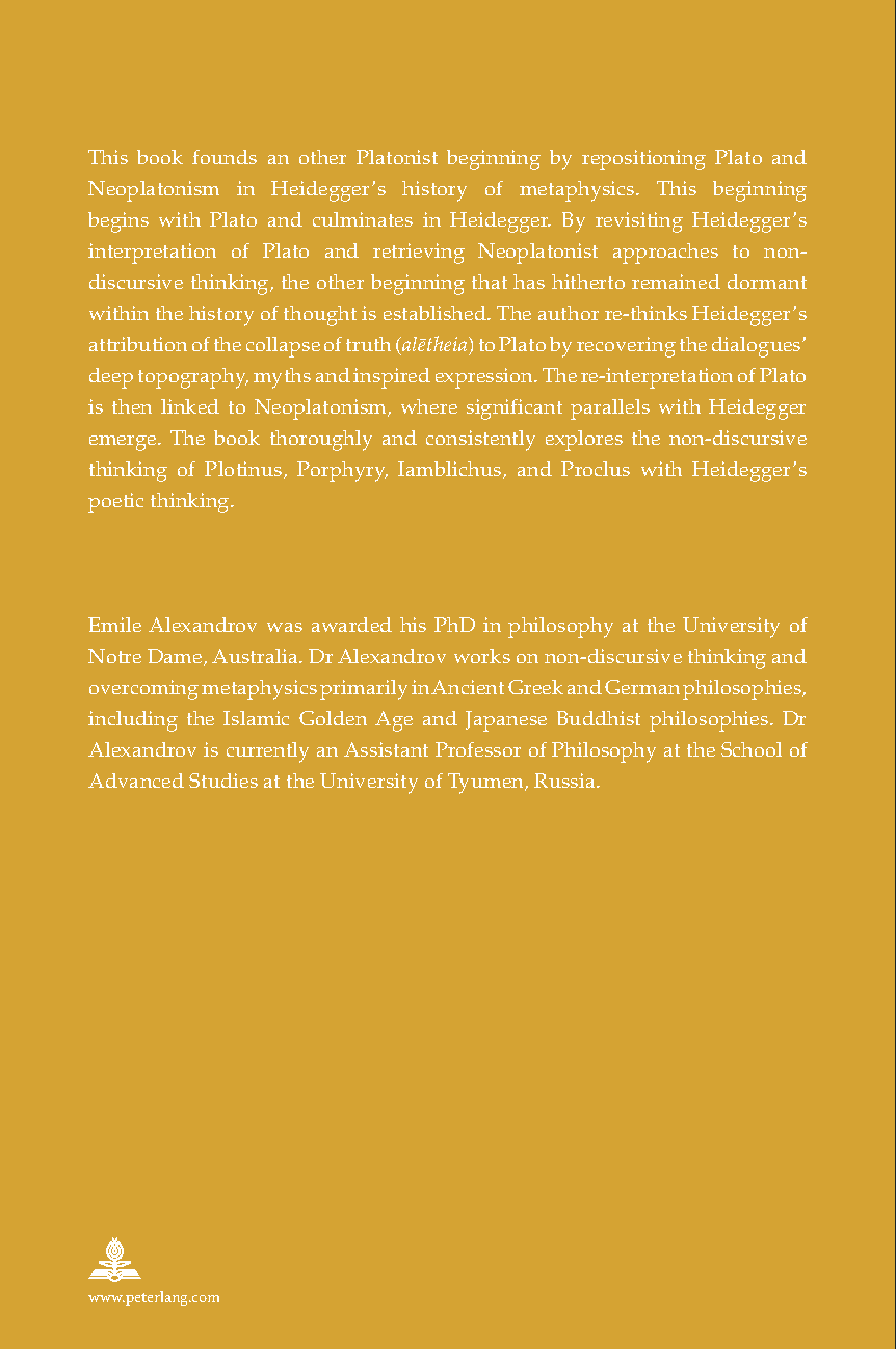 The Other Platonist Beginning: Heidegger and Neoplatonism by Emile Alexandrov and Peter Lang