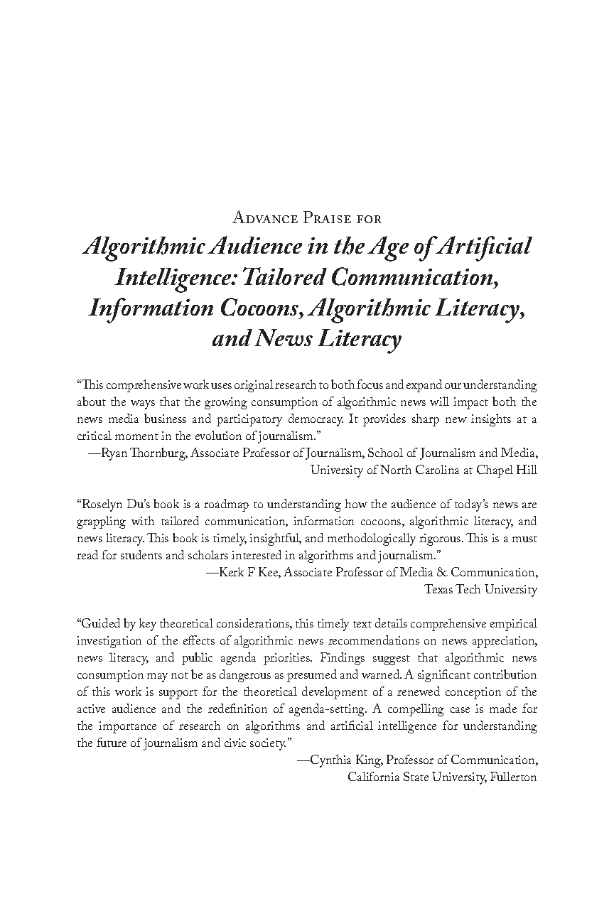 Algorithmic Audience in the Age of Artificial Intelligence: Tailored Communication, Information Cocoons, Algorithmic Literacy, and News Literacy - 1st Edition by Roselyn Du