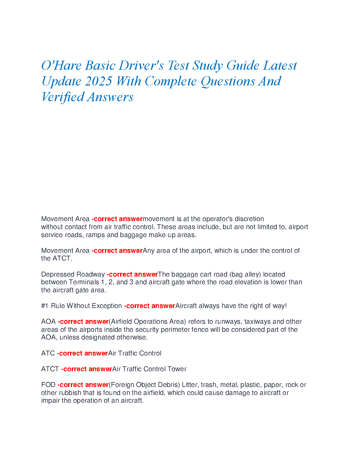 Ace your O'Hare Basic Driver's Test on the first try with this updated 2025 study guide. This comprehensive resource includes complete questions and verified answers to help you avoid resits and succeed in your exam preparation.