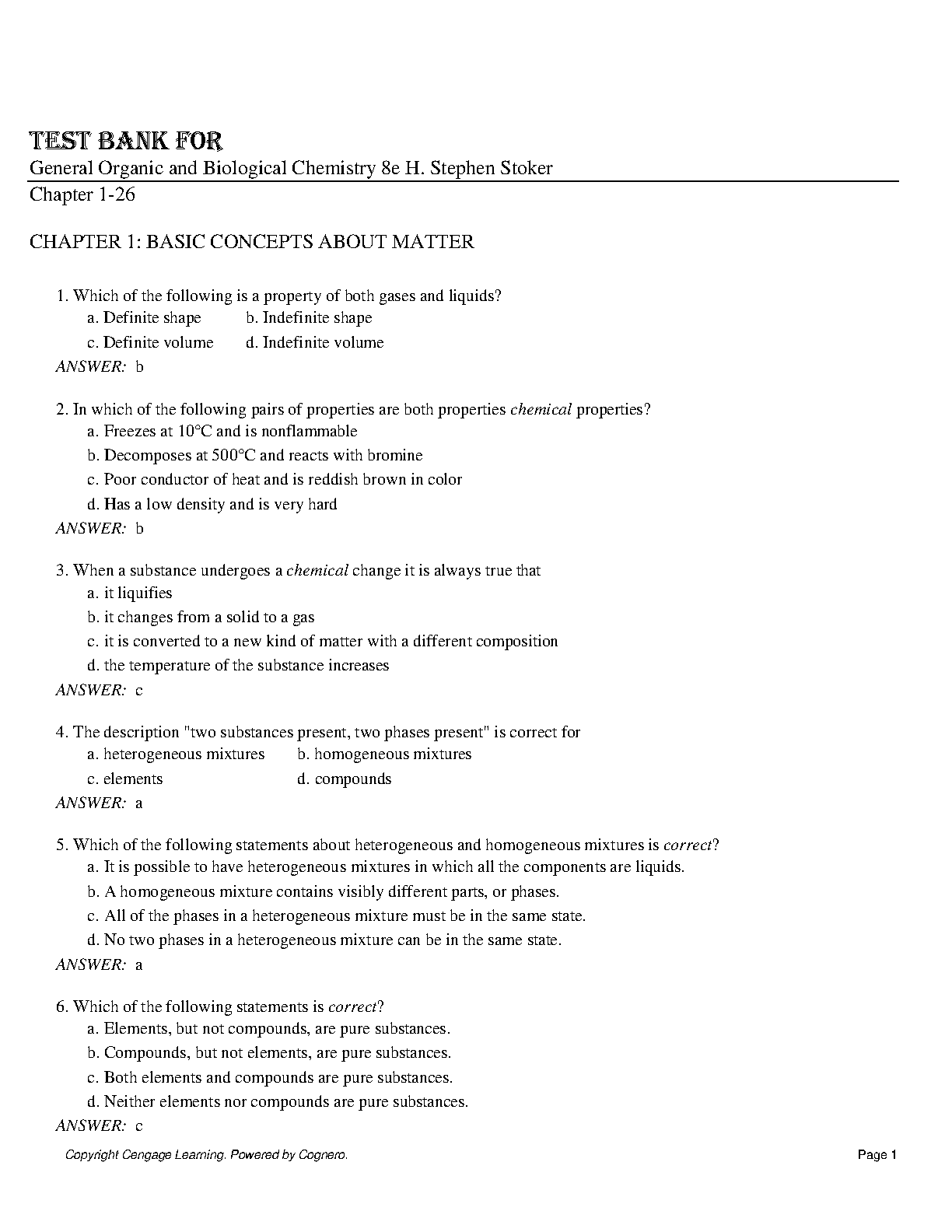 Test Bank for General Organic and Biological Chemistry 8th Edition by H. Stephen Stoker