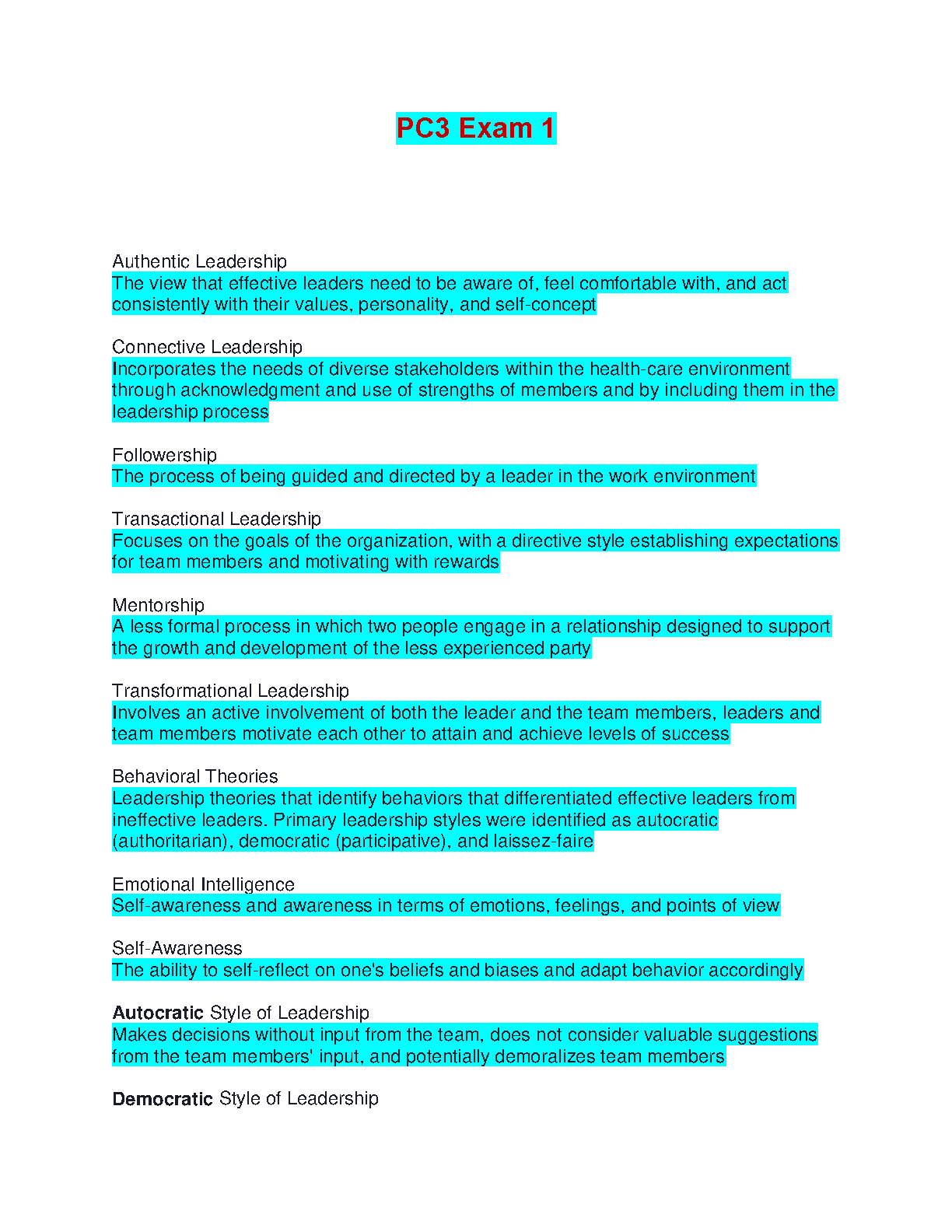 PC3 Exam 1: A Comprehensive Guide to Leadership Styles and Theories for 2024-2025 Academic Year