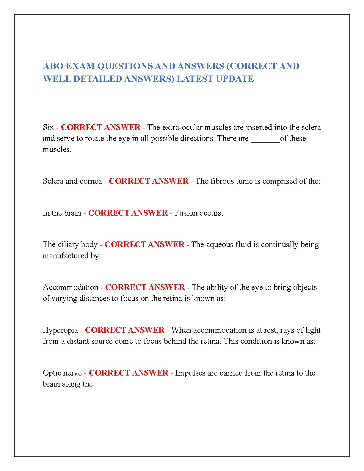 ABO Exam Questions and Answers (Correct and Well-Detailed Answers) Latest Update 2024/2025 Edition by [Author Names - If available, otherwise, replace with "Various Authors"]