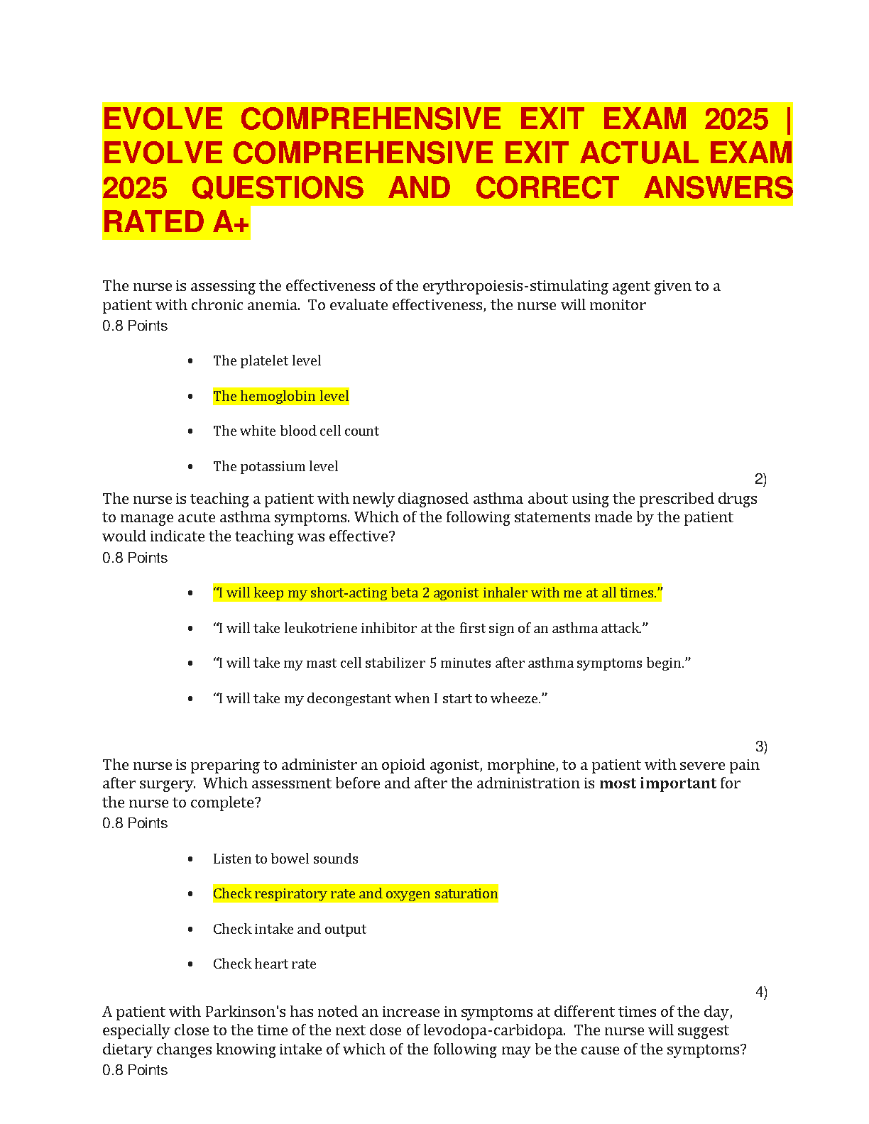 Evolve Comprehensive Exit Exam 2025 Questions and Correct Answers by Evolve Authors