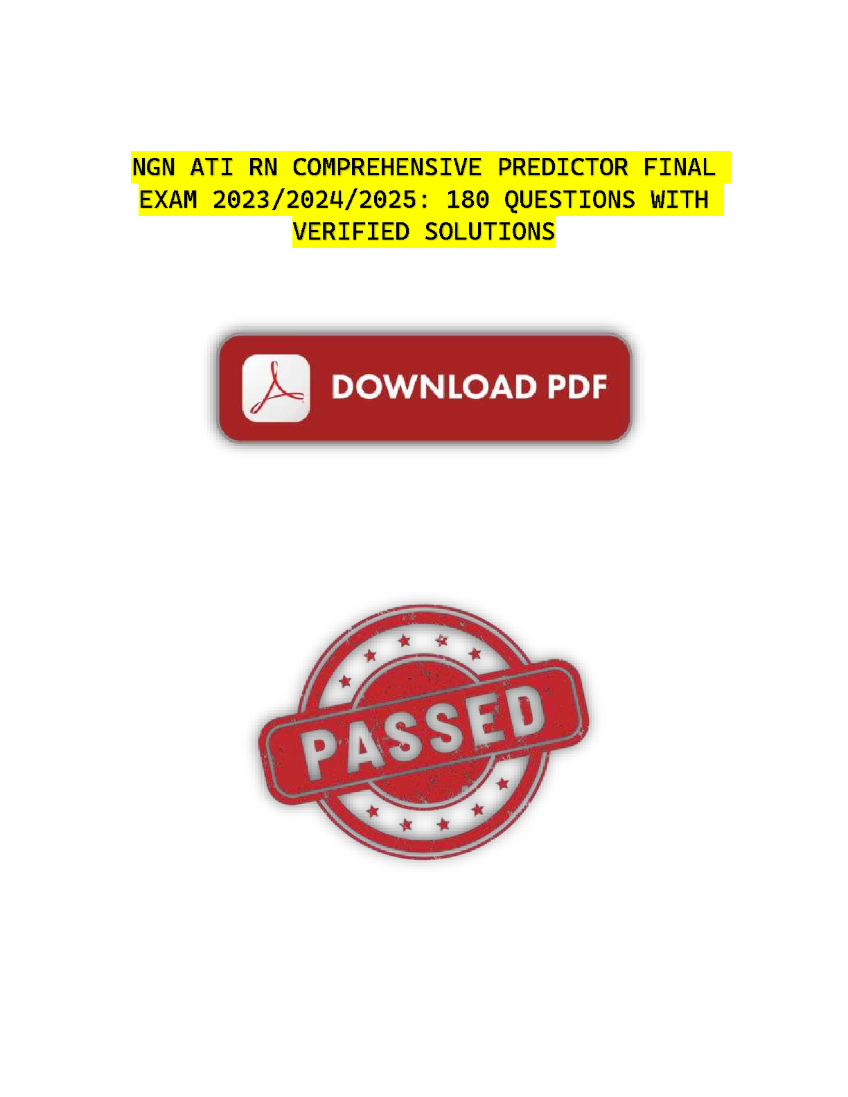 NGN ATI RN Comprehensive Predictor Final Exam 2023/2024/2025: 180 Questions with Verified Solutions by NGN