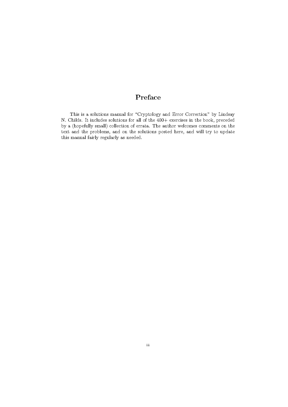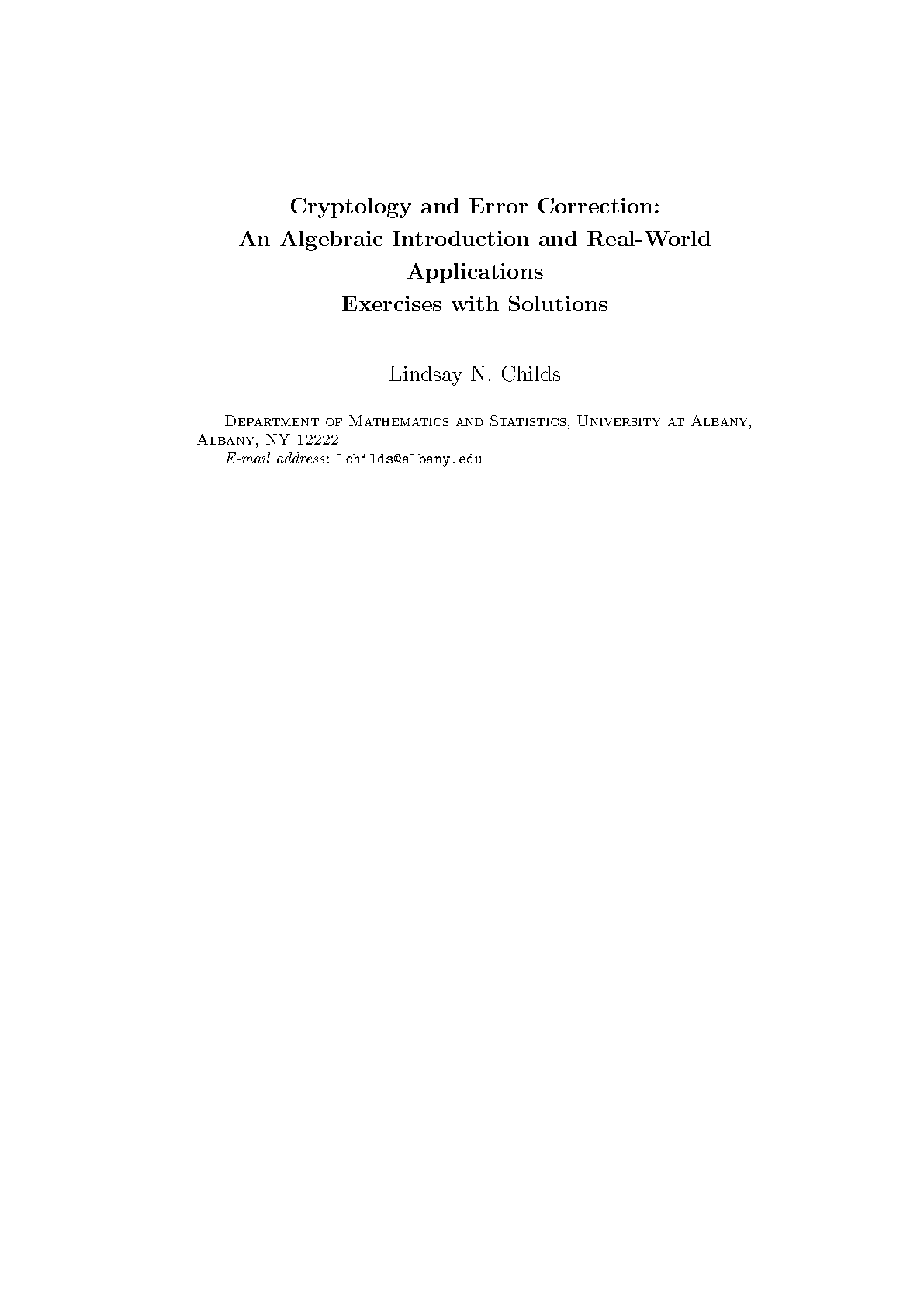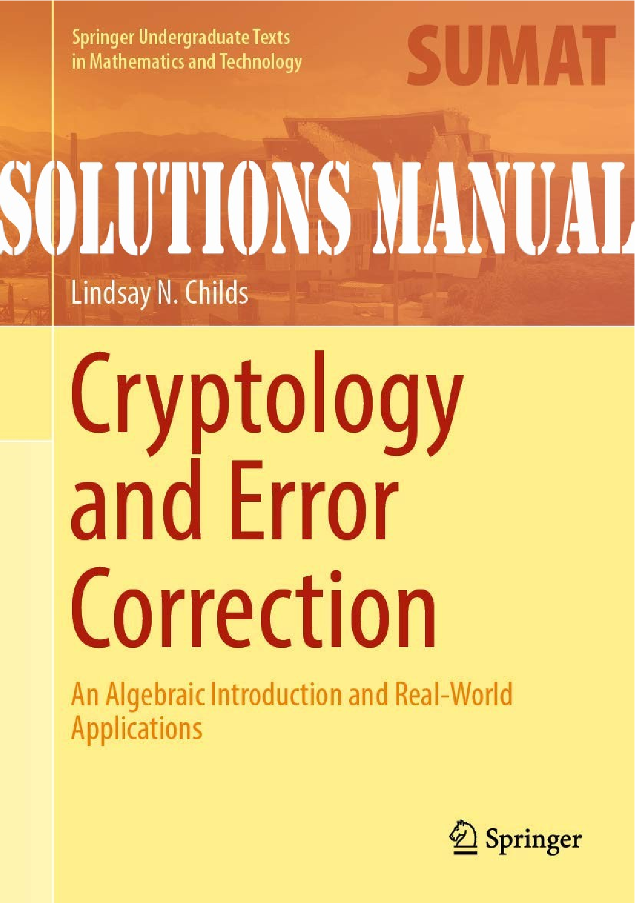 Solutions Manual for Cryptology and Error Correction: An Algebraic Introduction and Real-World Applications by Lindsay N. Childs