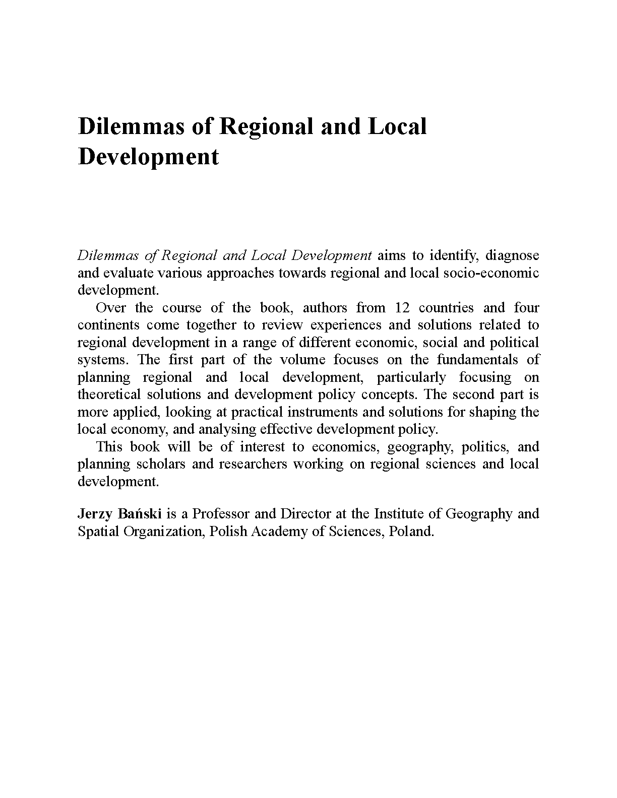Dilemmas of Regional and Local Development: A 2024/2025 Edition Edited by Jerzy Bański