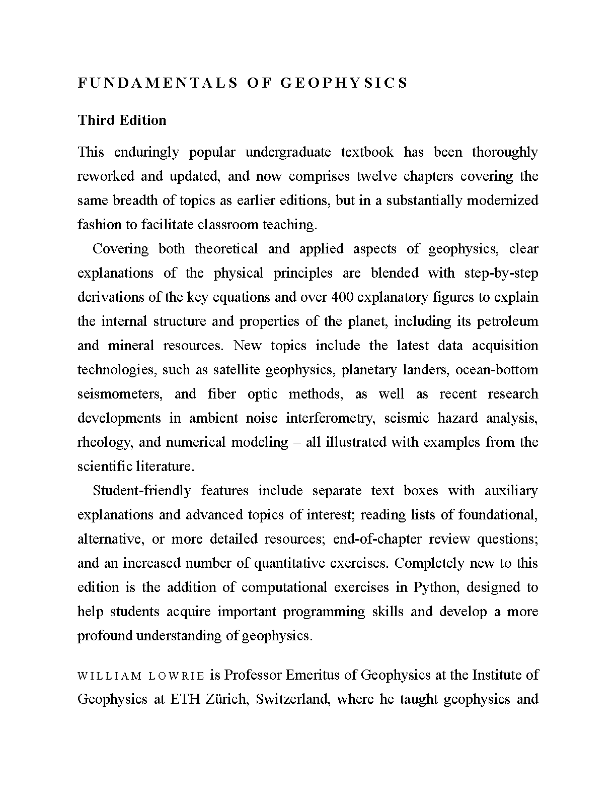 Fundamentals of Geophysics, Third Edition by William Lowrie and Andreas Fichtner: Ace Your Exams with this 2024/2025 Guide