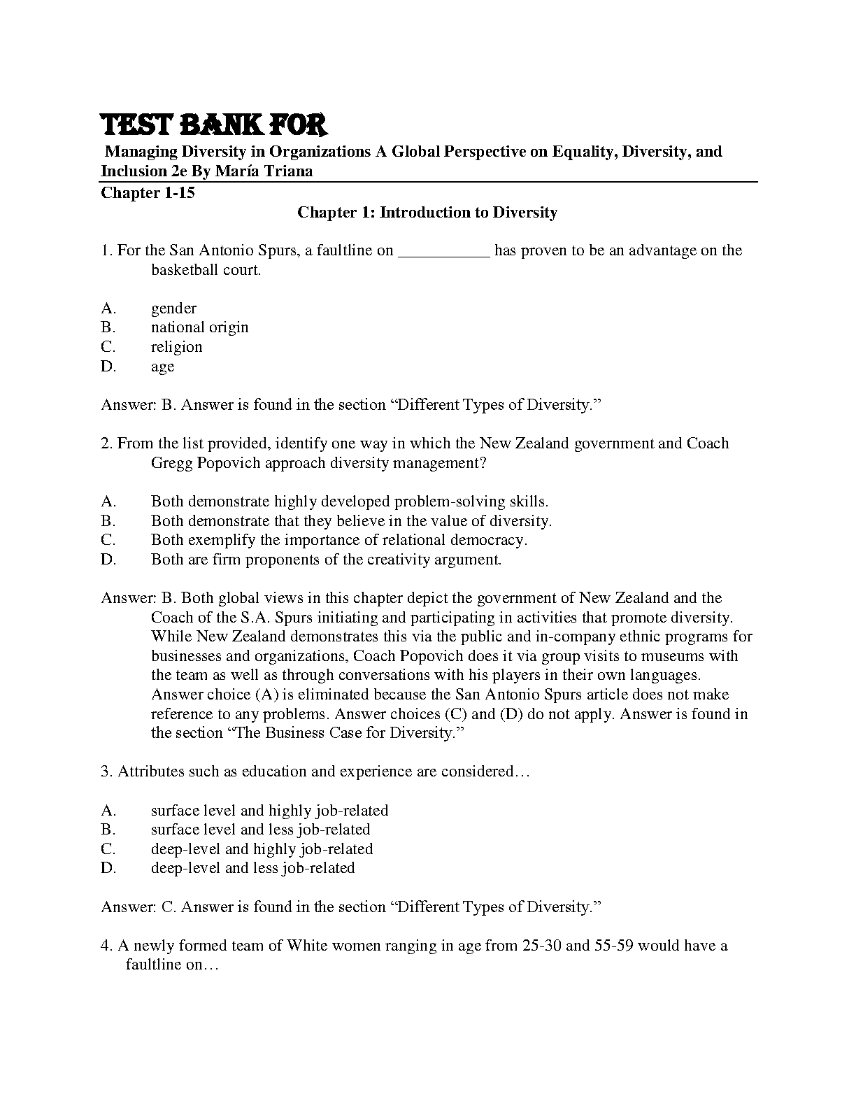 Managing Diversity in Organizations: A Global Perspective on Equality, Diversity, and Inclusion, 2nd Edition - Test Bank by María Triana