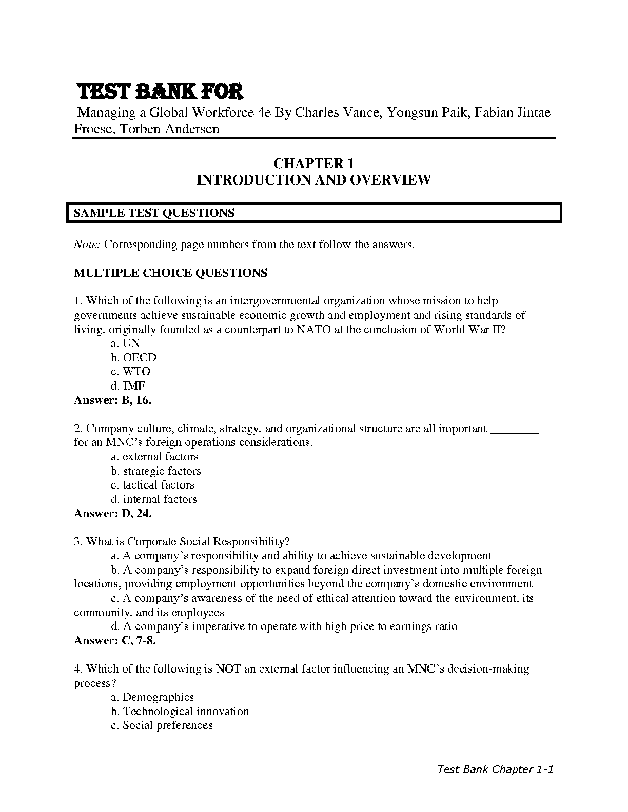 Managing a Global Workforce 4e Test Bank by Charles Vance, Yongsun Paik, Fabian Jintae Froese, and Torben Andersen