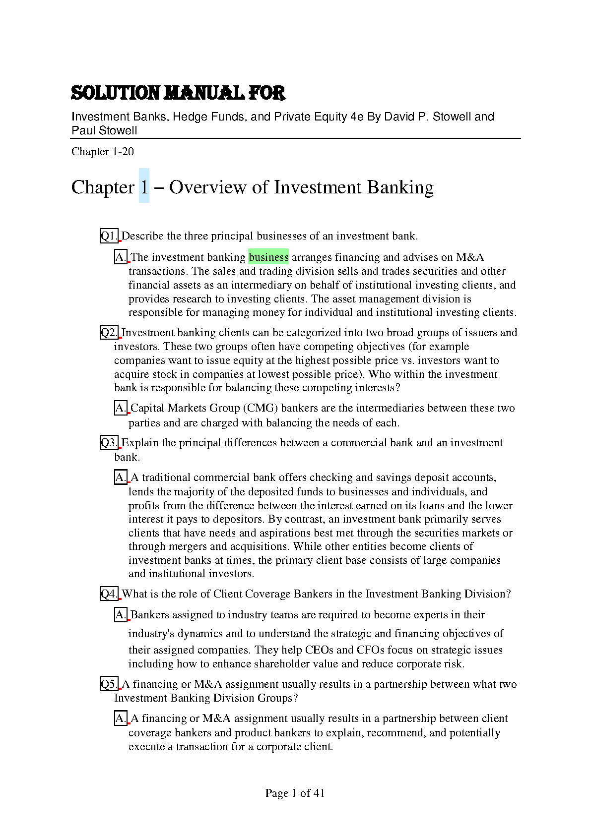 This comprehensive solution manual provides detailed answers and explanations to the end-of-chapter problems in the 4th edition of "Investment Banks, Hedge Funds, and Private Equity" by David P. Stowell and Paul Stowell. Perfect for students seeking to master the concepts and achieve exam success on their first attempt.