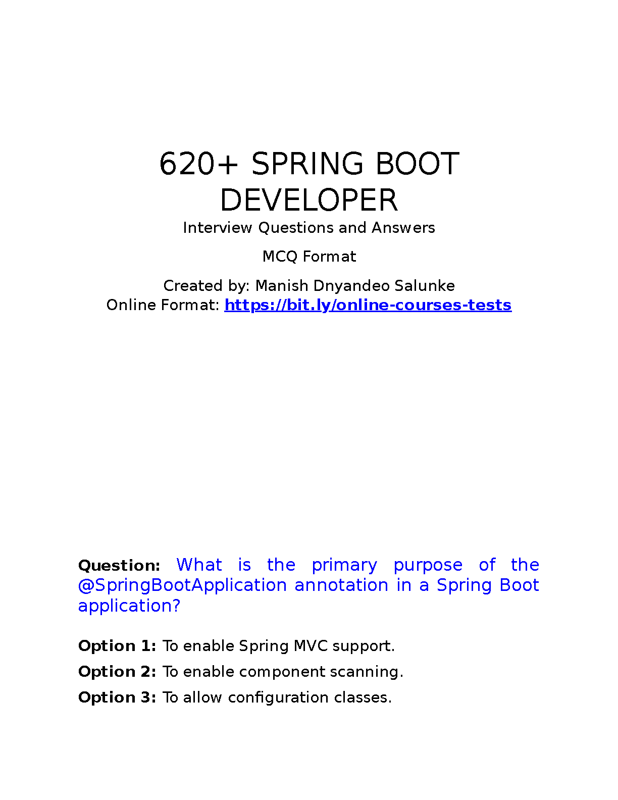 Ace your Spring Boot Developer interviews with this comprehensive resource! 620+ multiple-choice questions and answers, designed to help you pass your exams on the first attempt. Ideal for students preparing for 2024/2025 academic year exams.