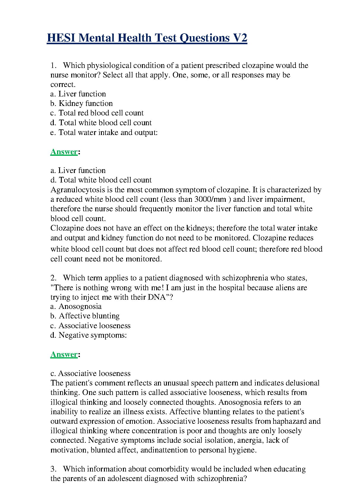 HESI Mental Health Test Questions V2 by [Author Names not found in the document]