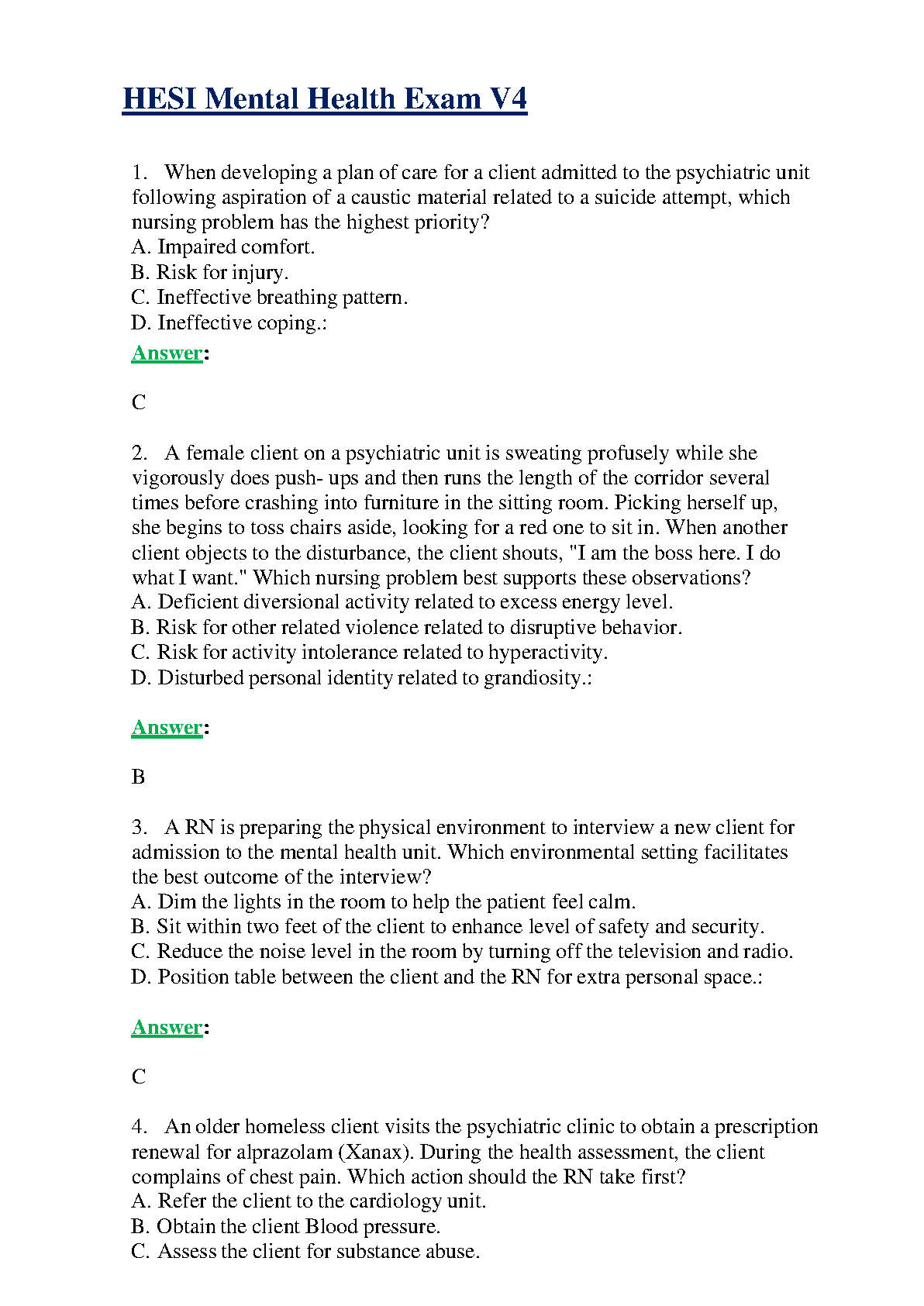 Ace your HESI Mental Health Exam on the first attempt with this invaluable resource. Designed for the 2024/2025 academic year, this study guide provides in-depth coverage of key concepts and practice questions to help you master the material and avoid resits.