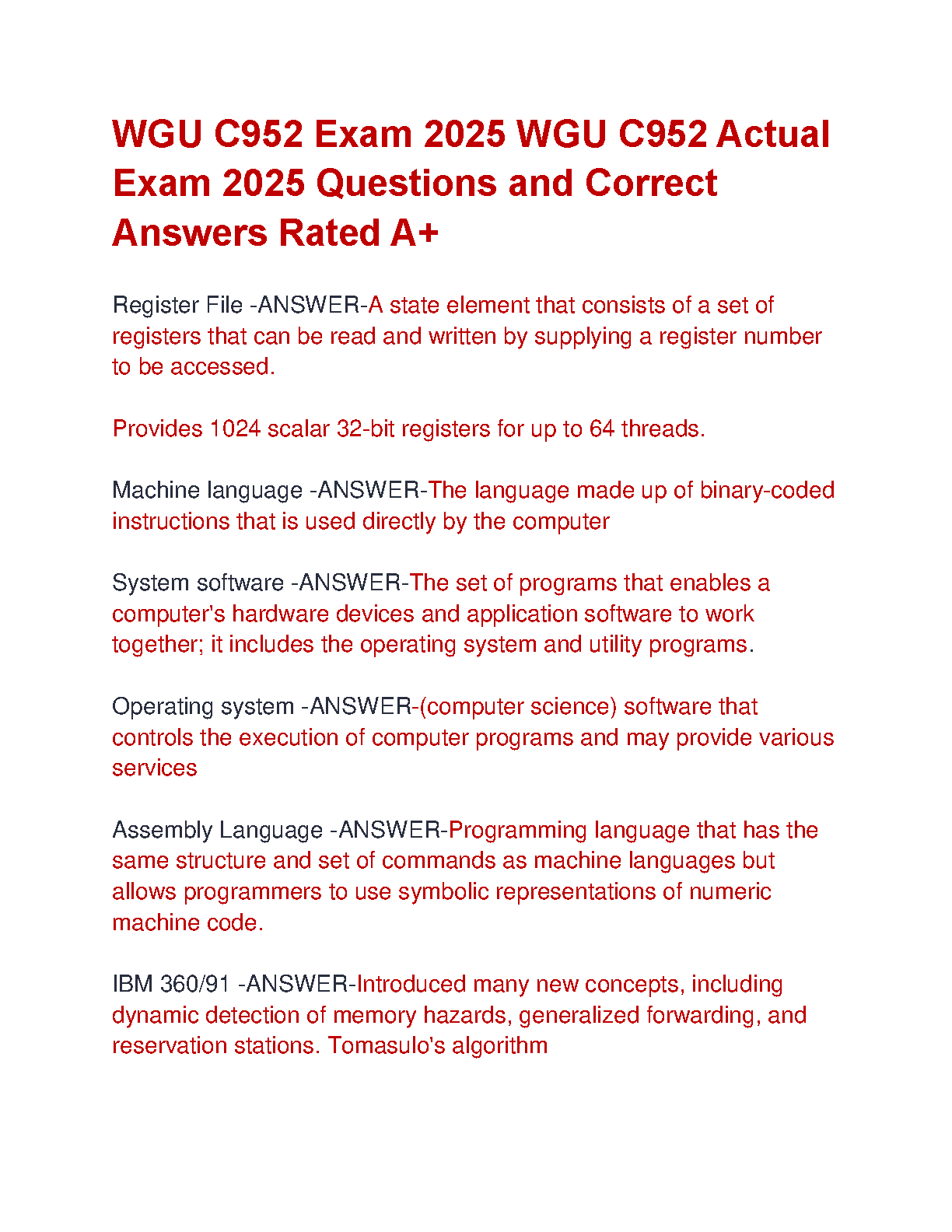 Ace your WGU C952 exam with this comprehensive guide containing 2025 questions and answers, rated A+. This resource is designed to help students pass their exams on the first attempt and avoid resits. Get ahead of the curve for the 2024/2025 academic year!