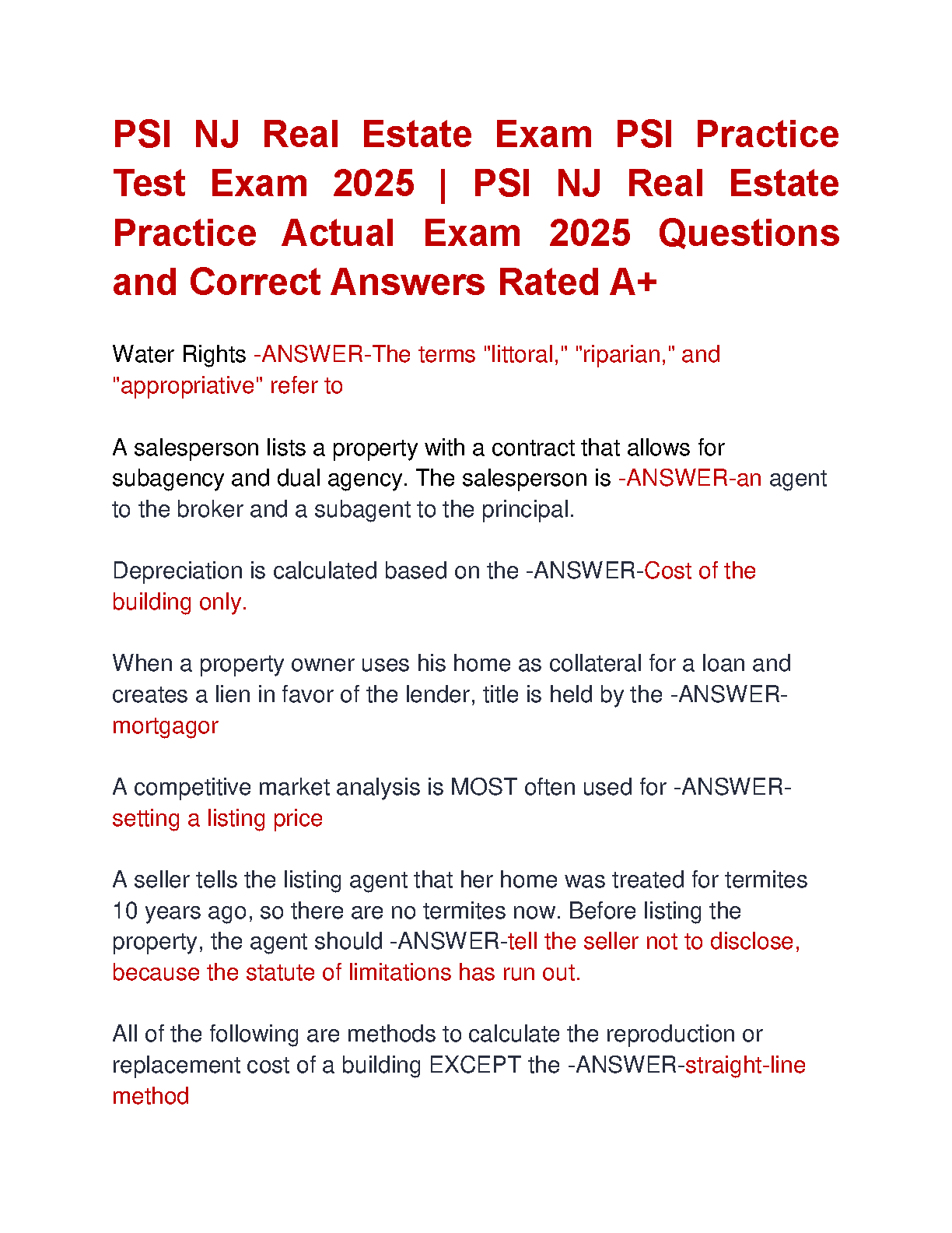 PSI NJ Real Estate Exam 2025 Practice Test: Actual Exam Questions and Answers by PSI
