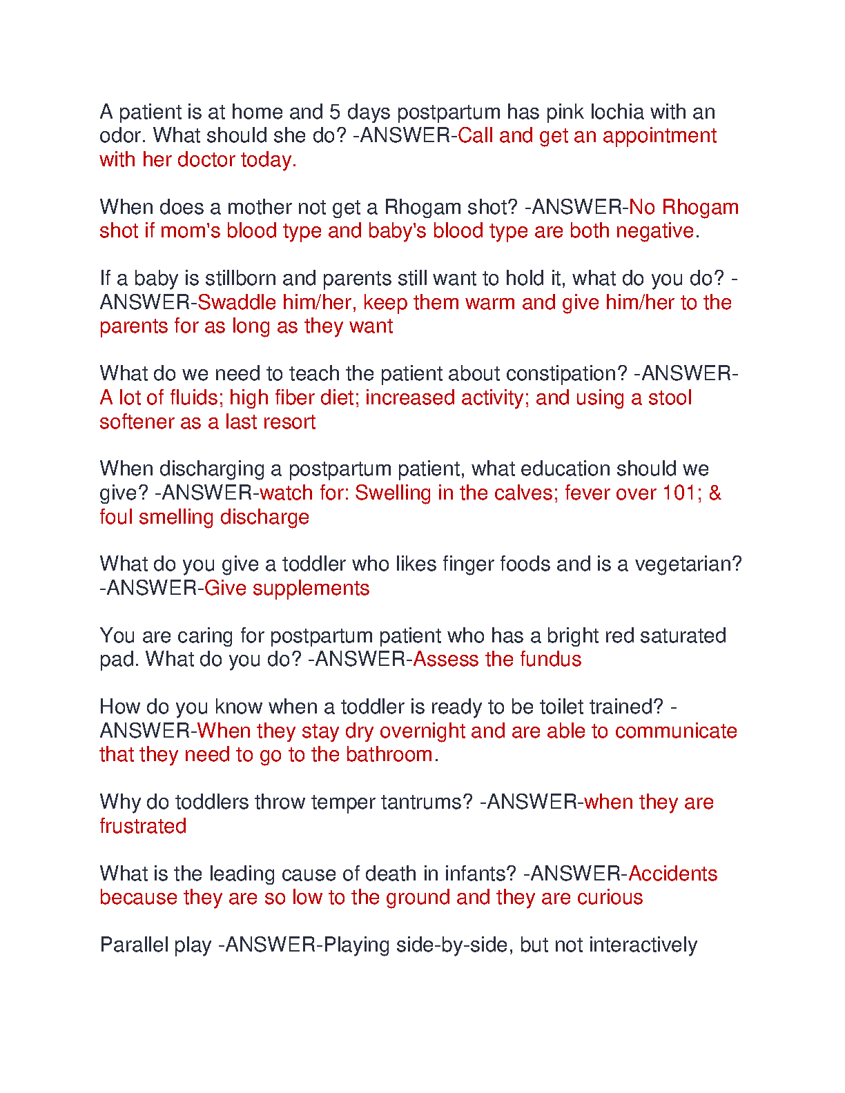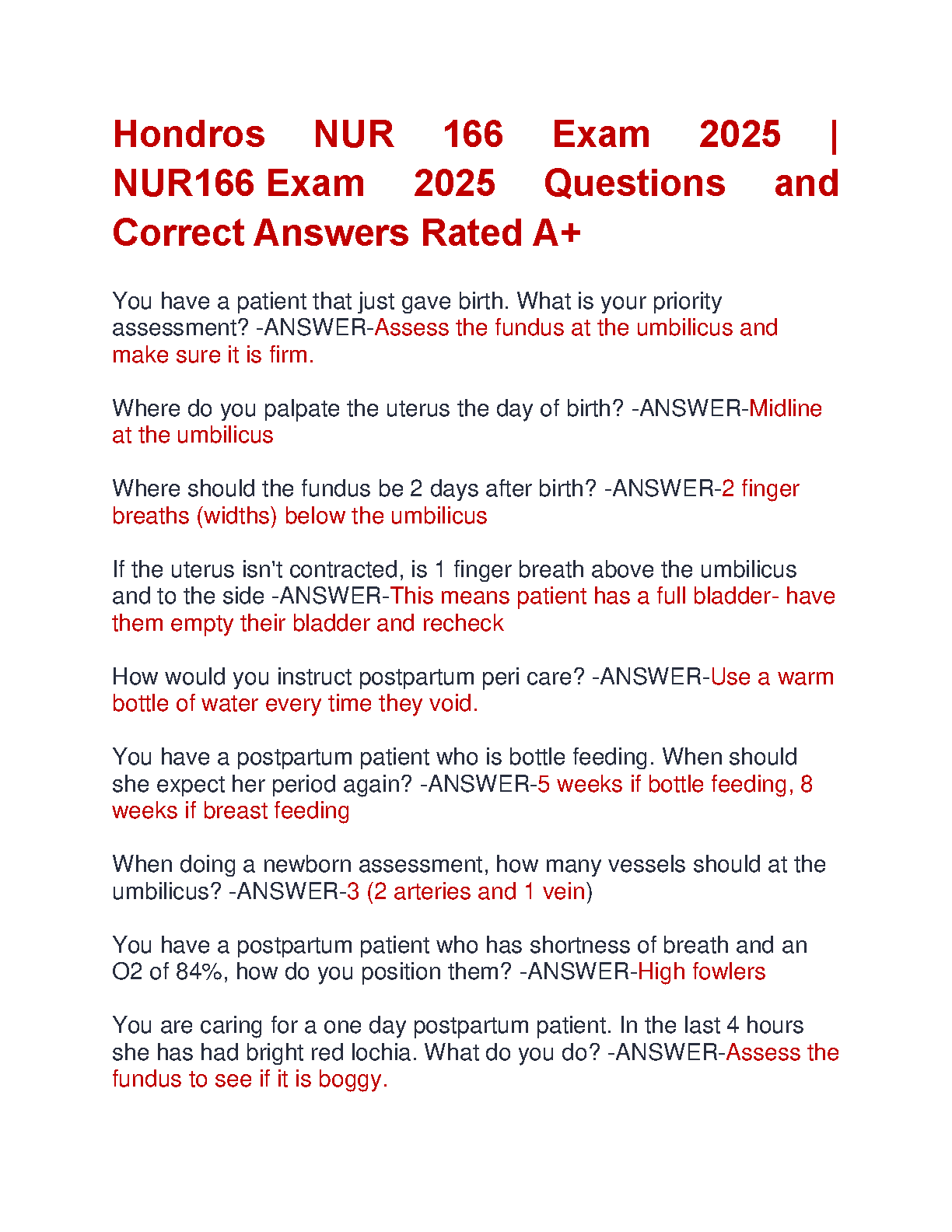 NUR 166 Exam 2025 Questions and Answers Rated A+ by Hondros