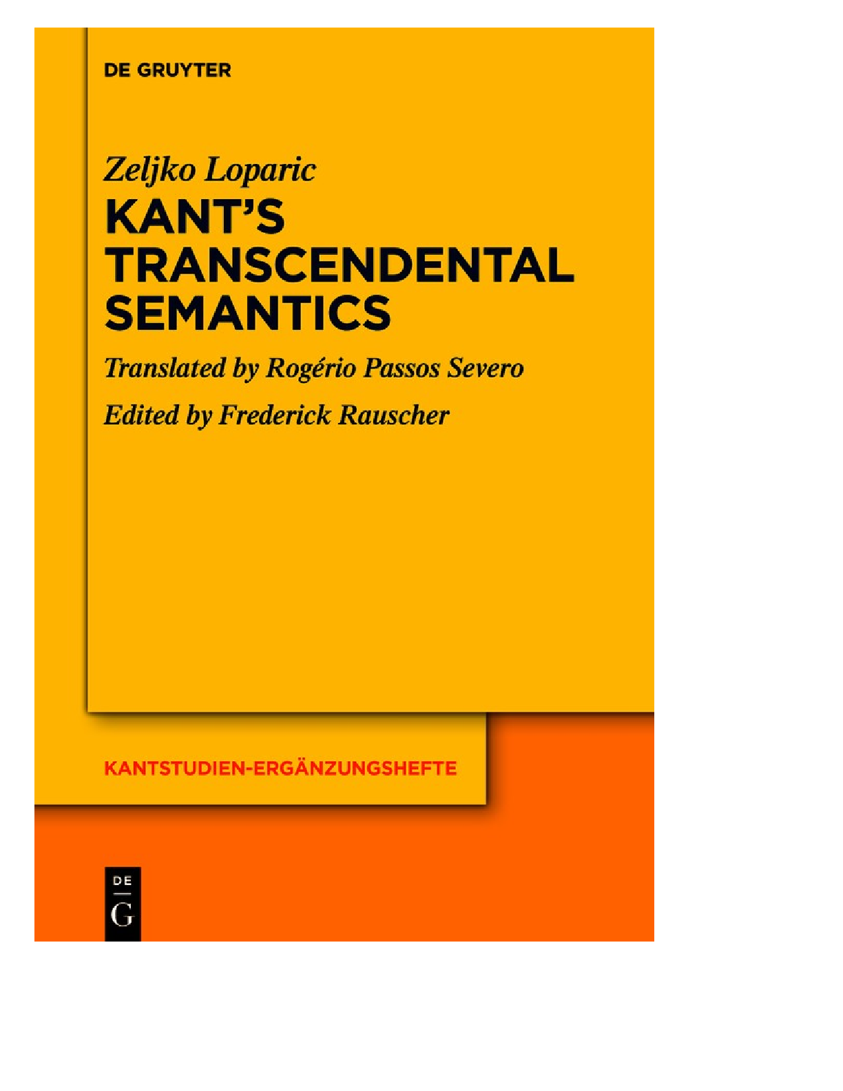 Kant's Transcendental Semantics: A New Edition by Zeljko Loparic, Translated by Rogério Passos Severo, Edited by Frederick Rauscher