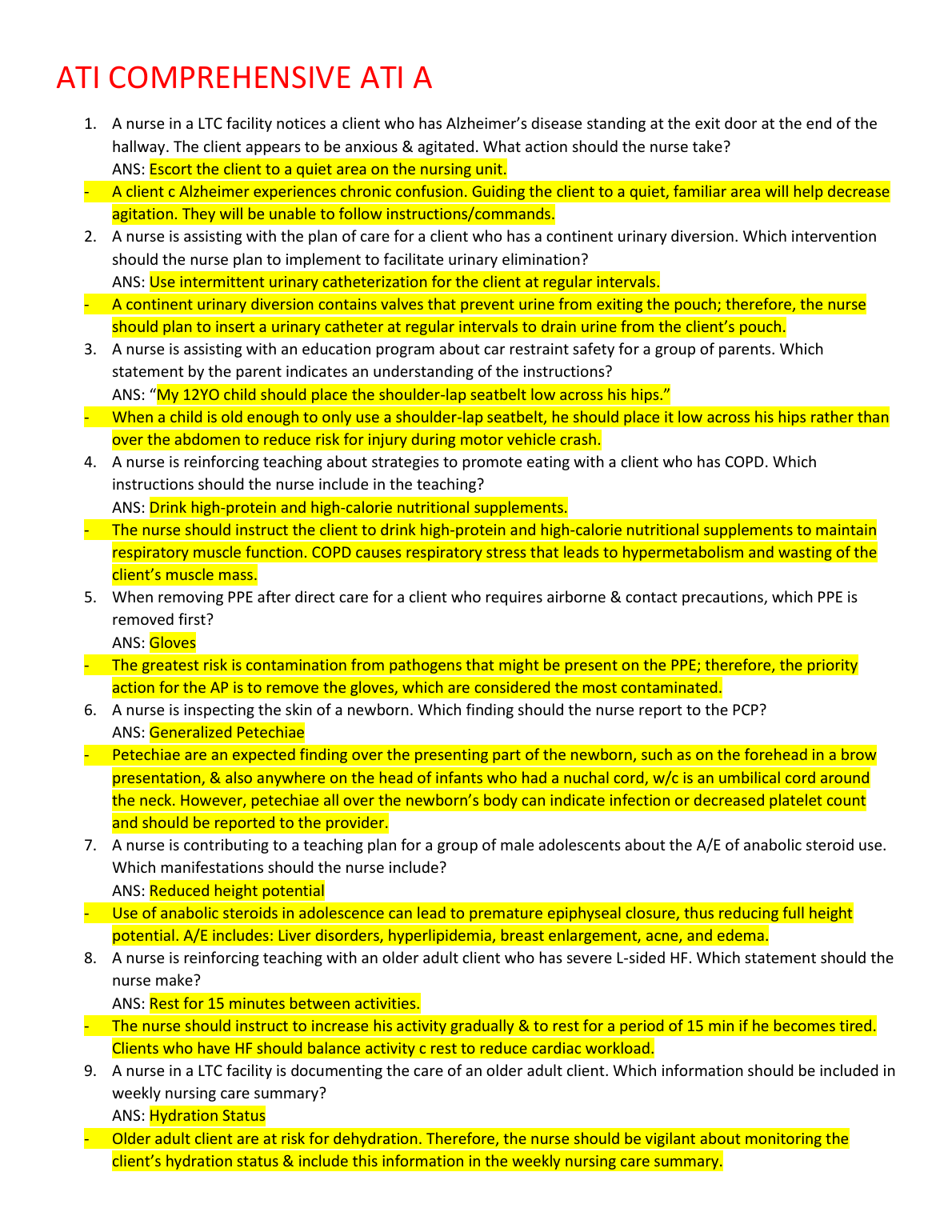 ATI COMPREHENSIVE ATI A REVIEW QUESTIONS AND ANSWERS VERIFIED SOLUTION