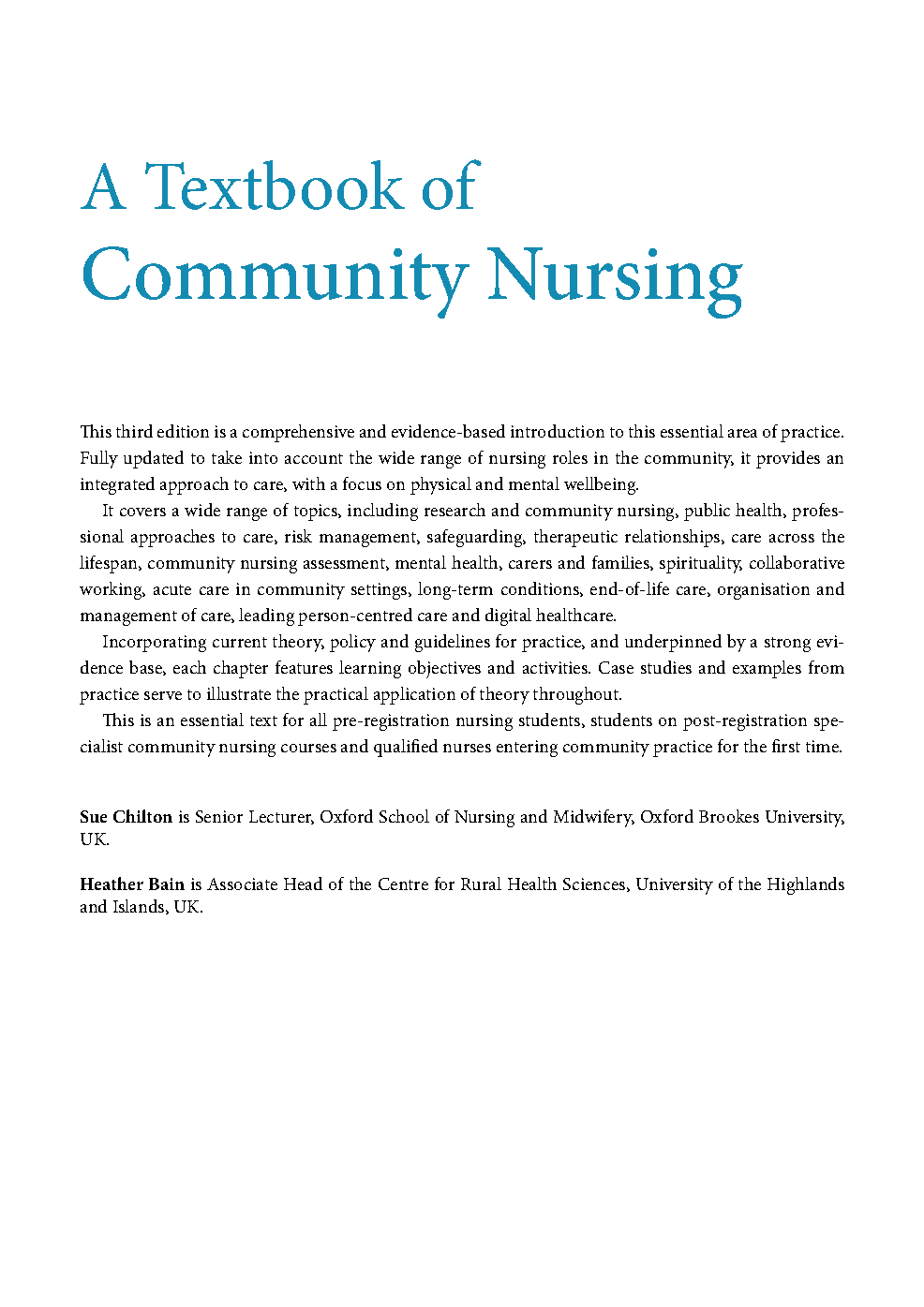 A Textbook of Community Nursing, Third Edition: Edited by Sue Chilton and Heather Bain