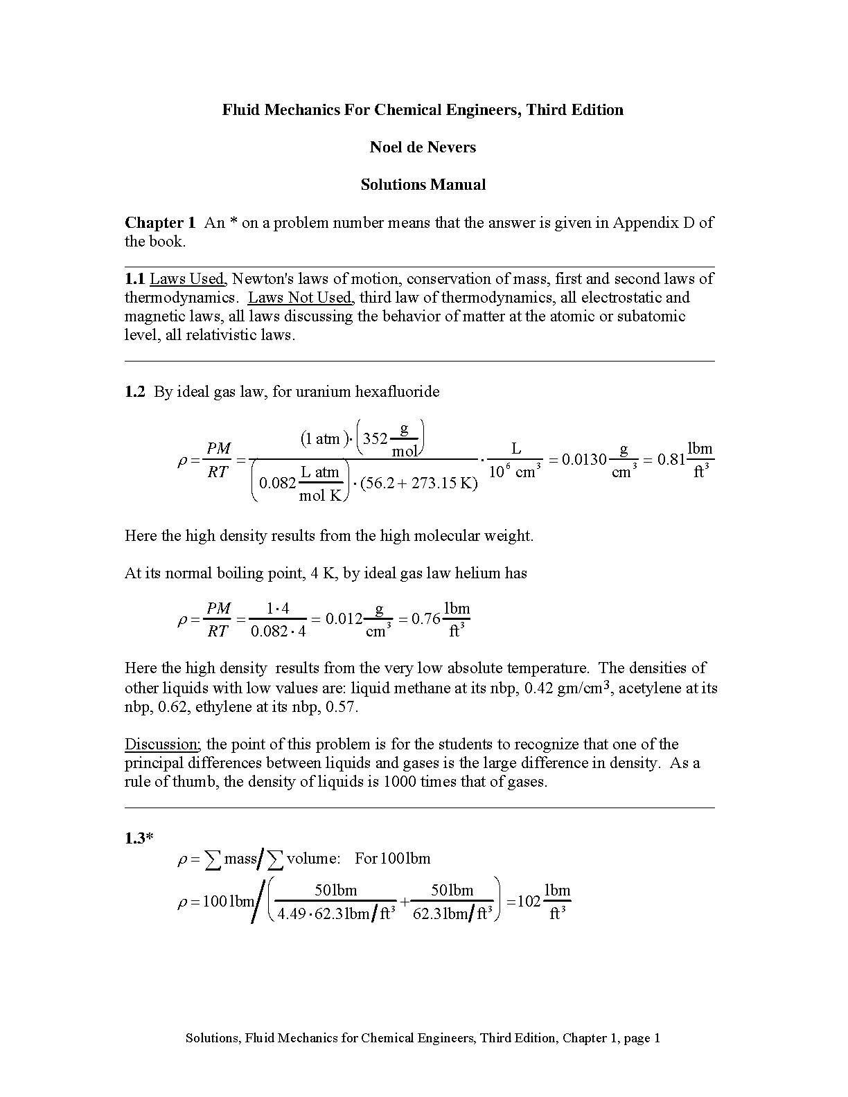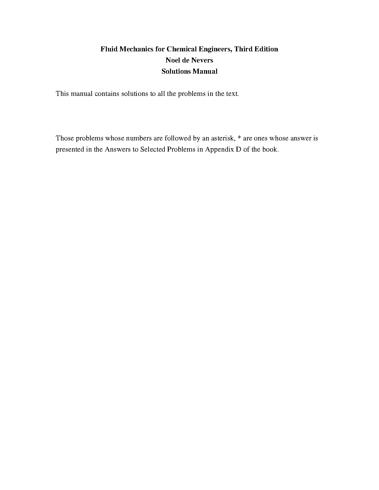 Fluid Mechanics for Chemical Engineers, Third Edition, by Noel de Nevers: Solutions Manual for Exam Success in 2024/2025