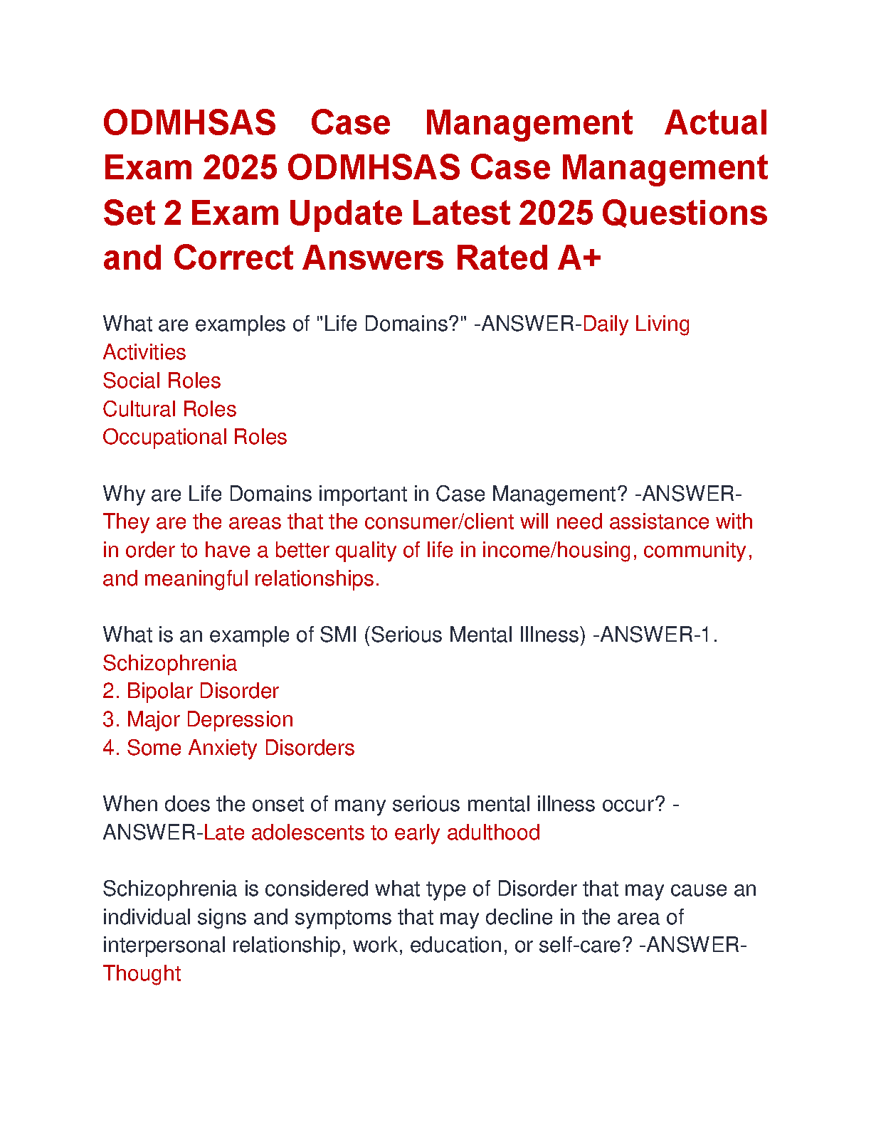 Ace your ODMHSAS Case Management Exam in 2025 with this comprehensive study guide. This updated resource includes the latest questions and answers, rated A+, to help you pass on your first attempt. Prepare effectively and avoid resits.