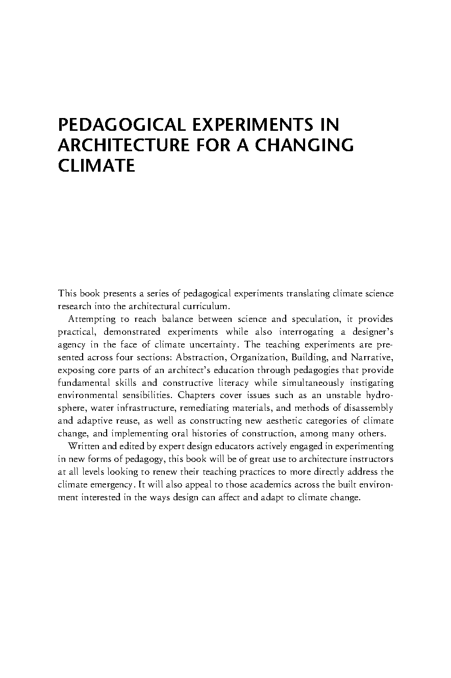 Pedagogical Experiments in Architecture for a Changing Climate - Edited by Tülay Atak, Luis Callejas, Jonathan A. Scelsa, and Jørgen Johan Tandberg