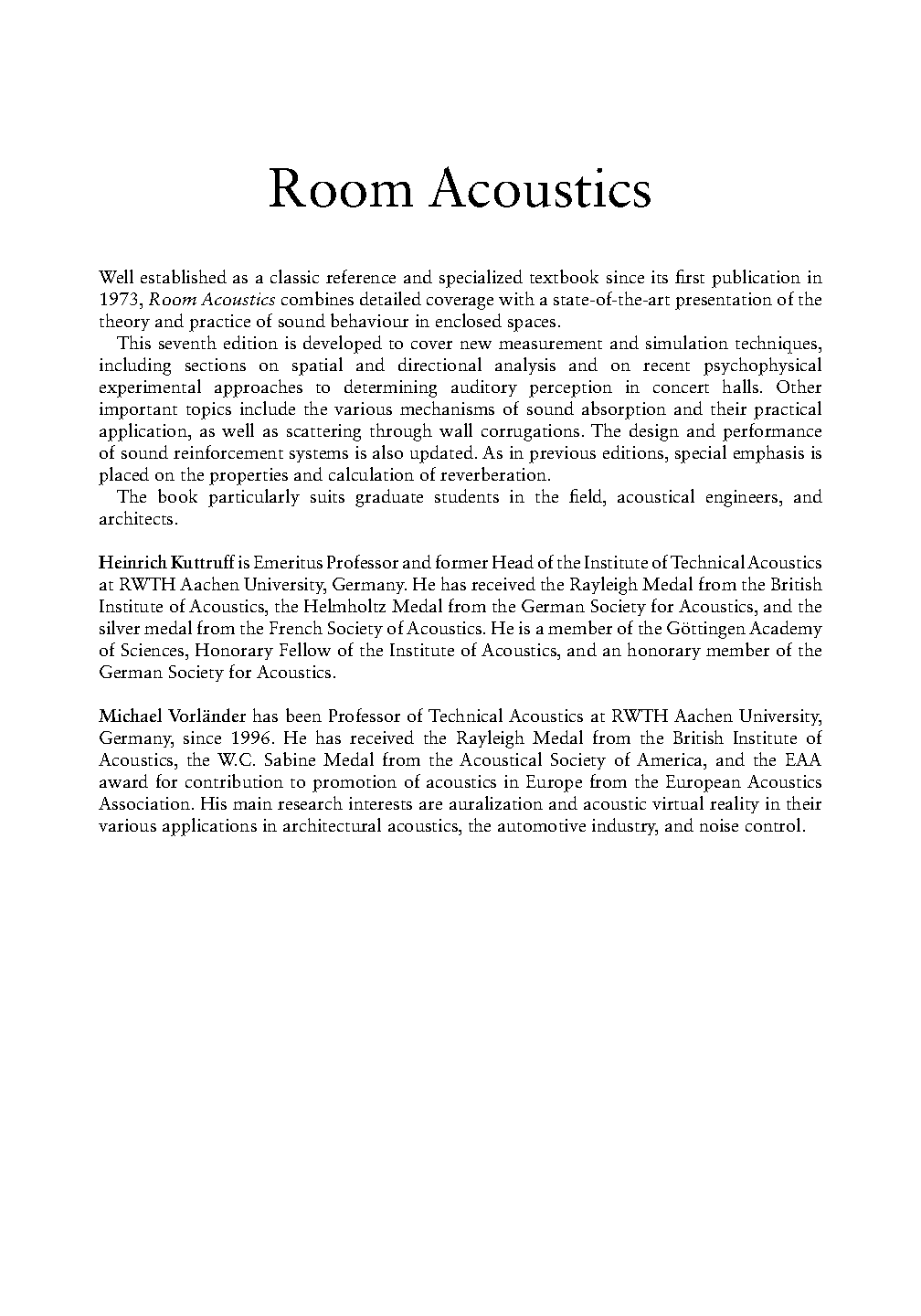 Room Acoustics, Seventh Edition by Heinrich Kuttruff and Michael Vorländer: A Comprehensive Guide for Students